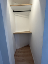 Il offre un salon ouvert sur une cuisine spacieuse avec rangements et branchement pour lave-linge, ainsi qu’une salle d’eau avec WC.
