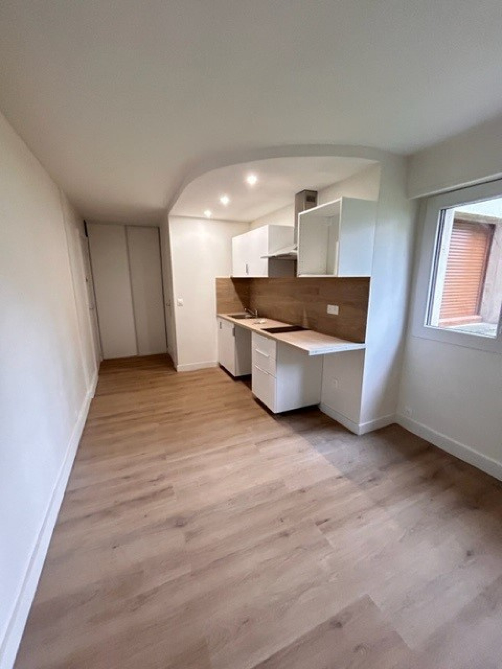 Au calme dans une résidence paysagée et proche des commerces, un studio de 19m² en rez-de-chaussée, comprenant entrée avec placard, une pièce principale parquetée, avec un coin cuisine aménagée et équipée (plaque hotte) , une salle de douche avec toilettes.