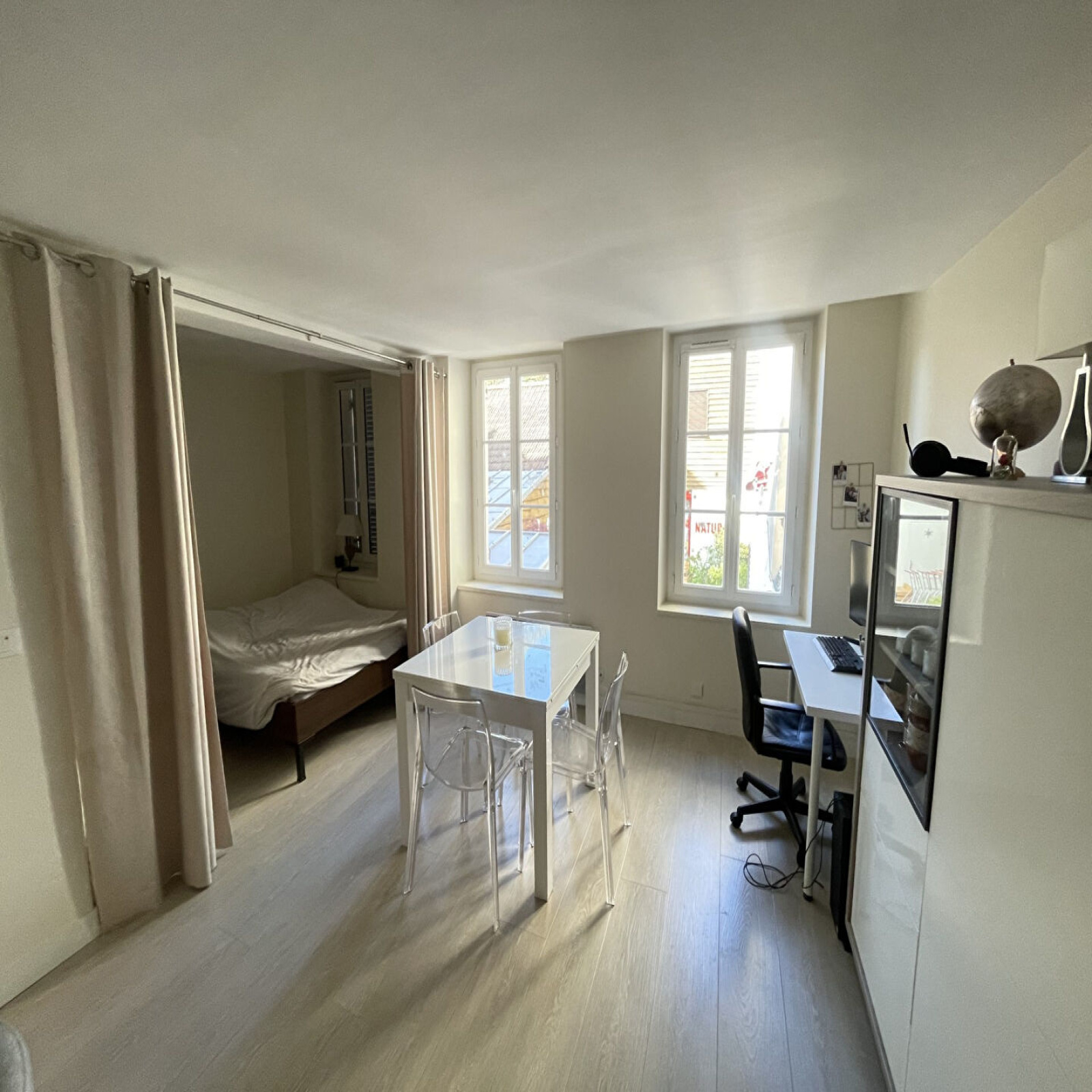 Idéalement situé en plein centre-ville de Saint-Germain-en-Laye, à proximité de la place du marché et des commerces, ce studio double de 40,07 m² au premier étage d'un ancien immeuble sans ascenseur offre un environnement calme. Il se compose d'une entrée avec placard, d'une pièce principale comprenant un coin chambre et une cuisine ouverte aménagée et semi équipée (réfrigérateur, plaque vitrocéramique) et une salle de bains avec wc. Le confort est assuré avec un système de chauffage et eau chaude individuelle électrique.