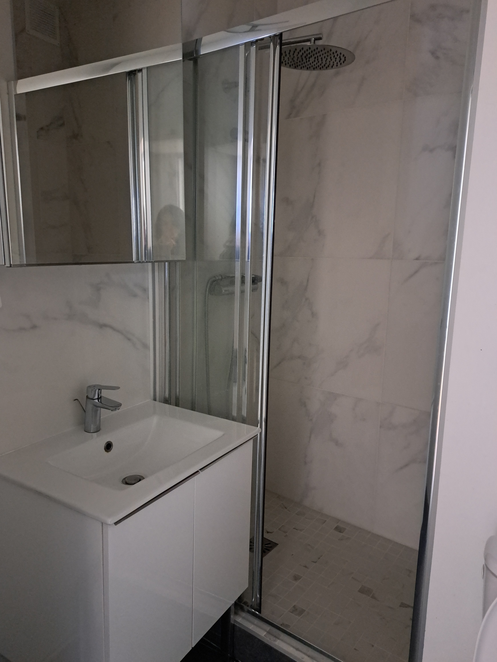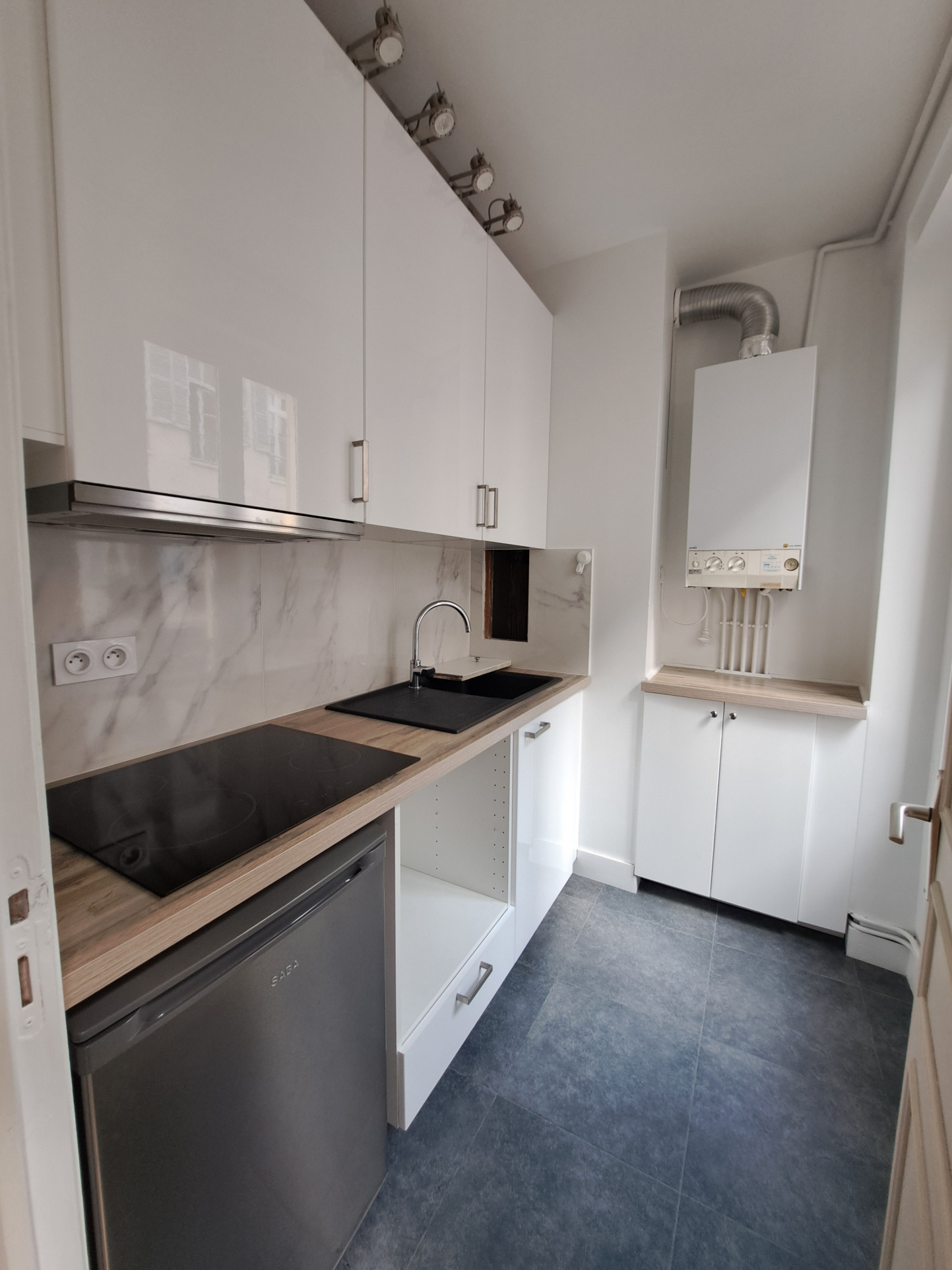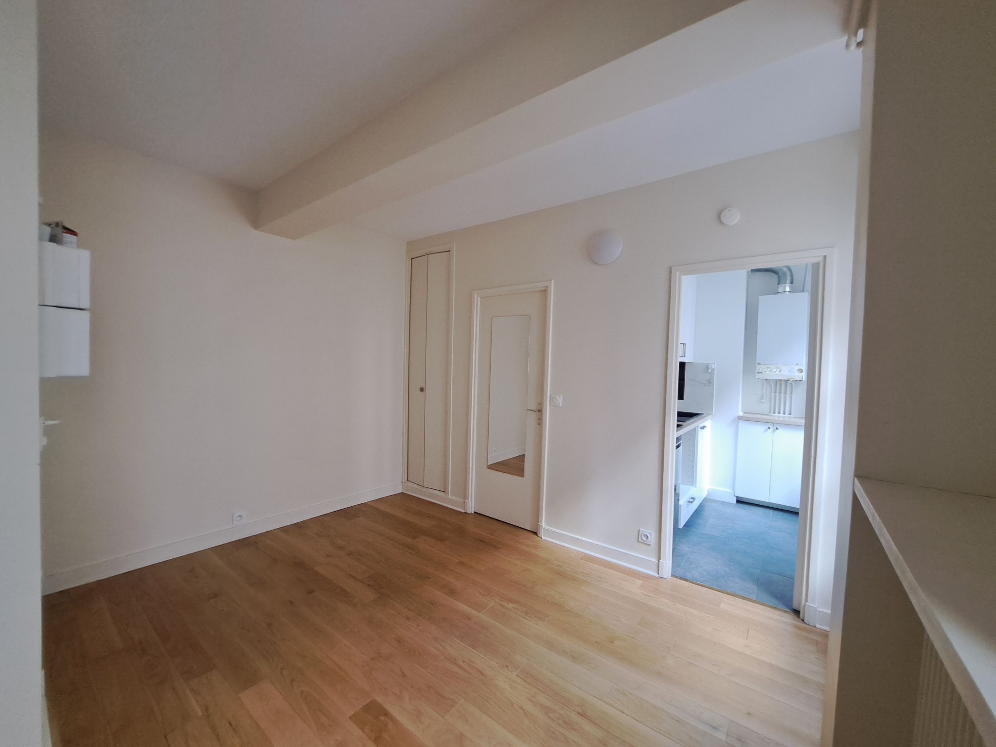 Centre de Saint Germain en Laye, dans une rue piétonne, à 5 minutes à pied du RER A, studio de 22 m², situé au 1er étage d'un ancien hotel. Il compred une entrée dans pièce principale, une cuisine séparée avec hotte, réfrigérateur, plaque, une salle d'eau avec wc et évacutaiton pour lave-linge.
