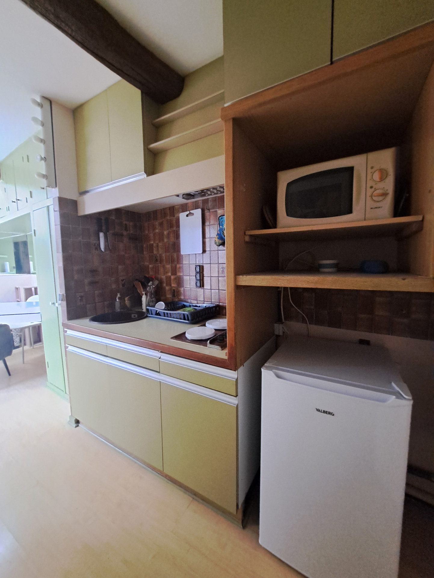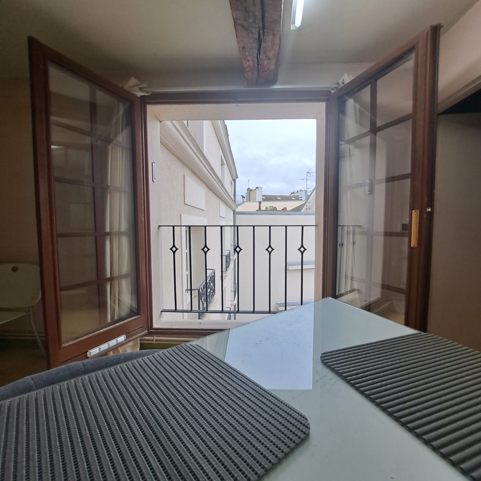 Plein centre de Saint Germain en laye, au calme absolu, appartement meublé de 2 pièces situé au 3è et dernier étage par escalier d'une petite copropriété athipique.
