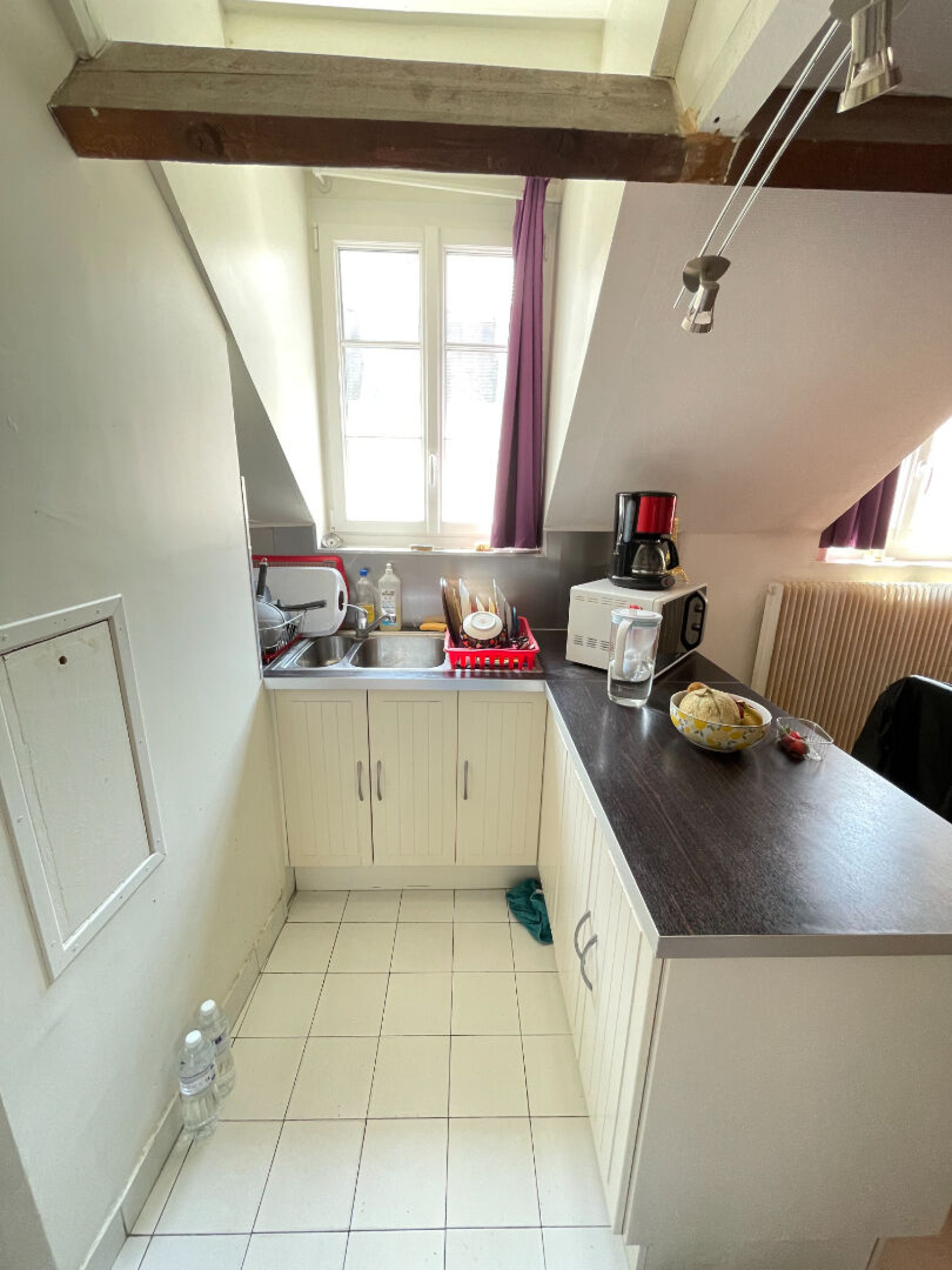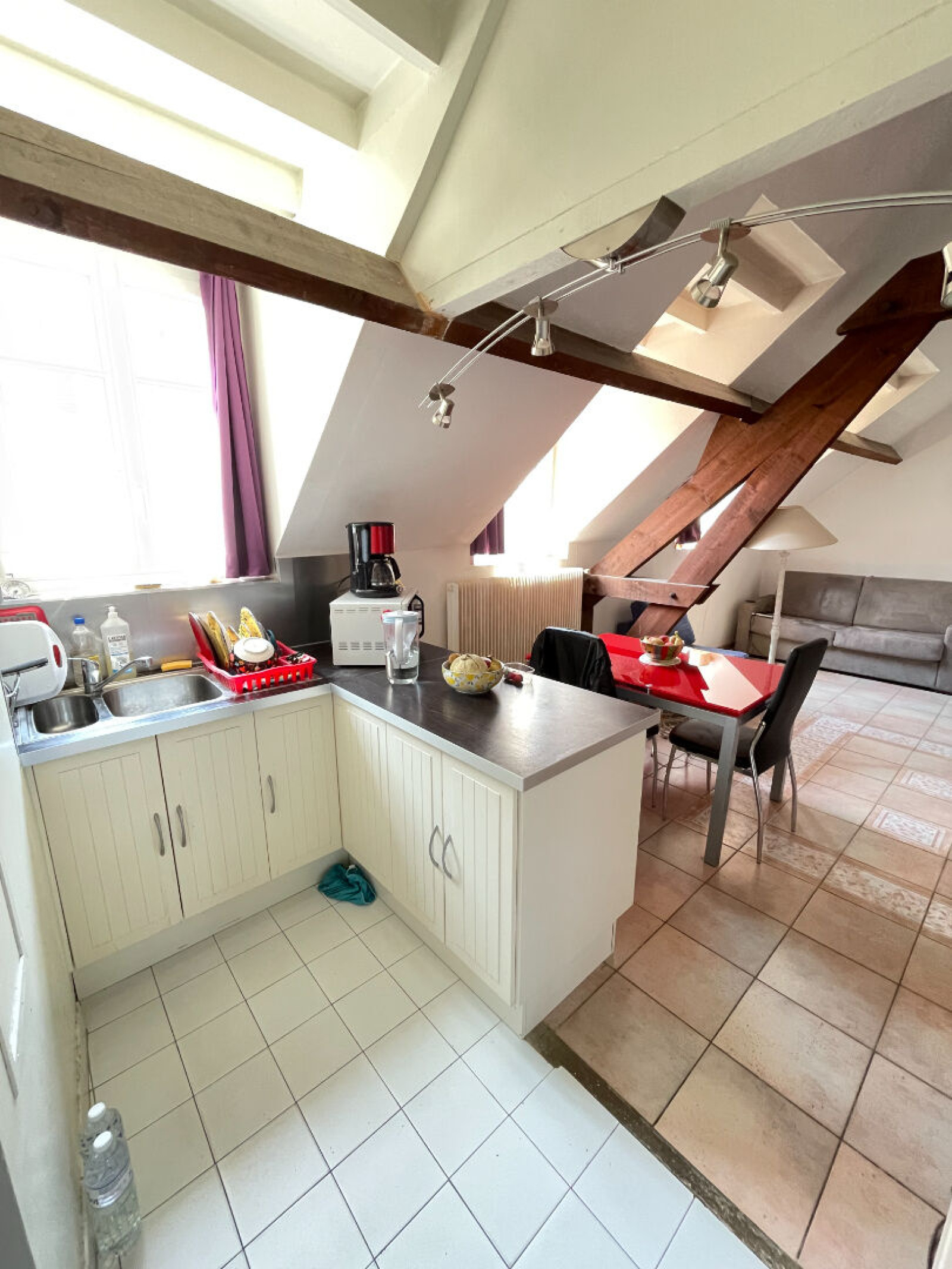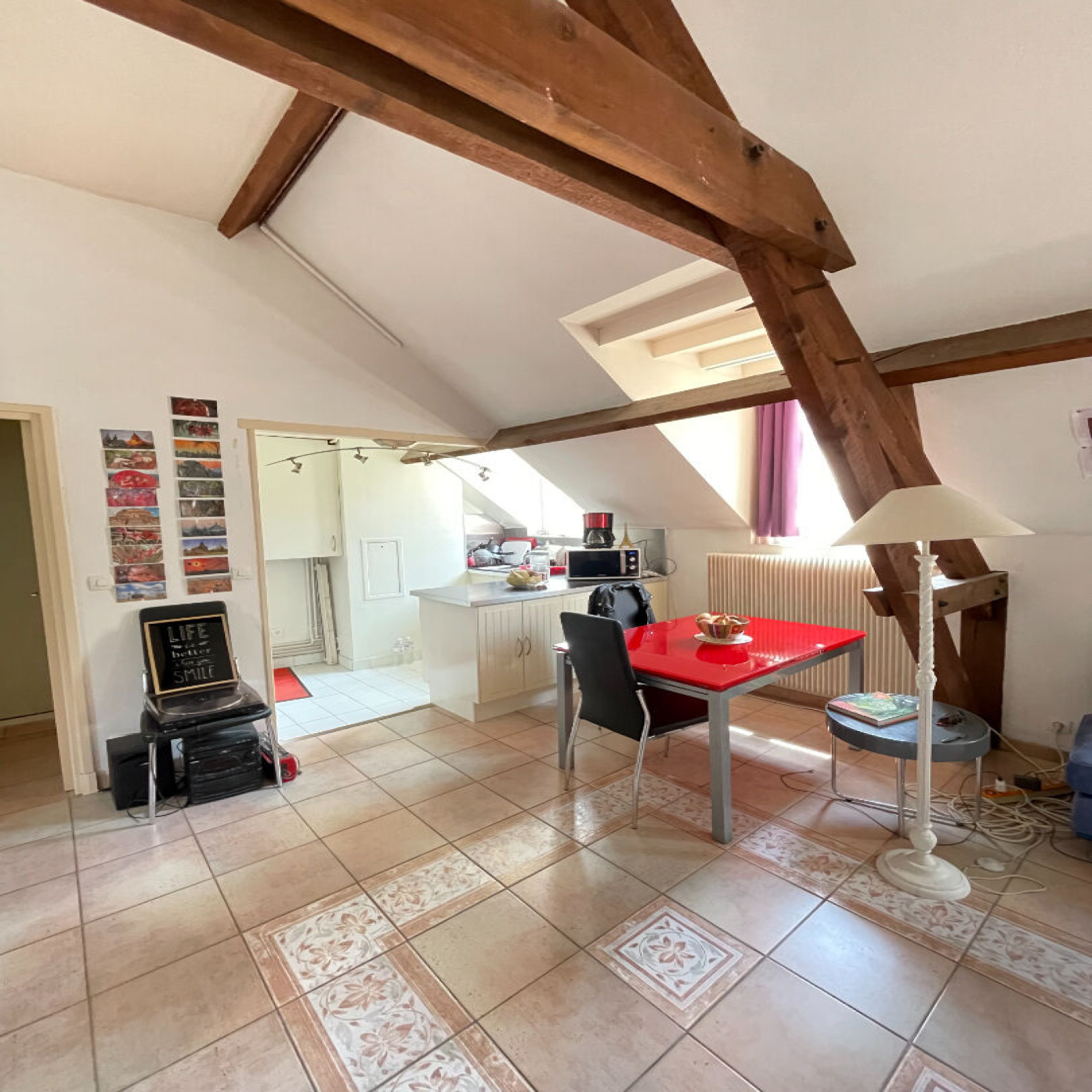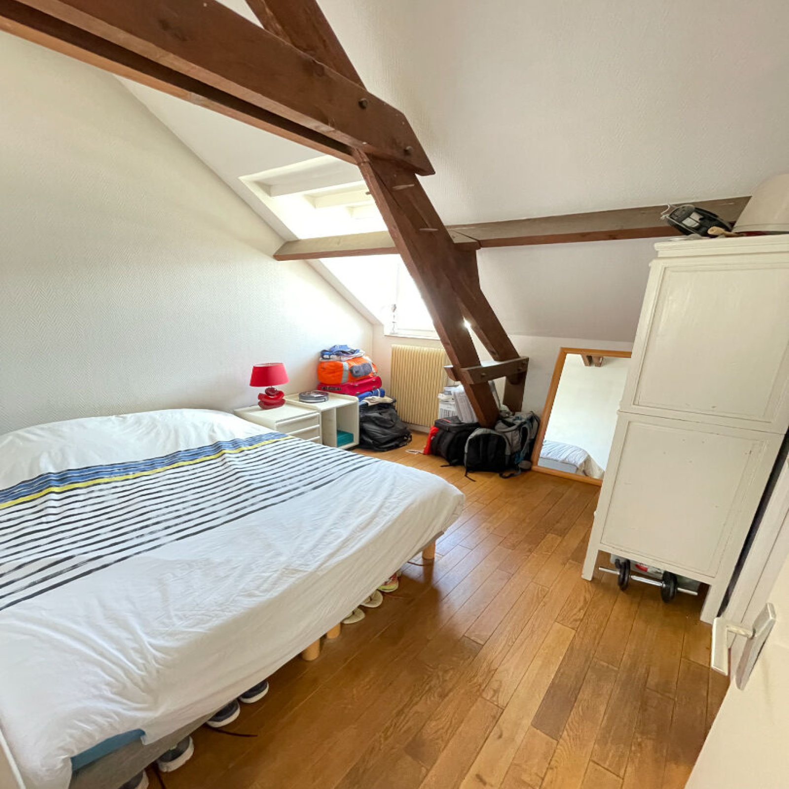 A 2' à pied du RER A. Le Cabinet Descolas vous propose à la location ce bel appartement 2 pièces de 40,89 m², situé au 3 eme et dernier étage d'un ancien hôtel particulier, niché dans une rue piétonne paisible, en plein coeur de Saint-Germain-en-Laye. Un cadre de vie unique : Ce bien de caractère saura vous séduire par son authenticité et son charme ancien : Un séjour lumineux avec poutres apparentes, une cuisine ouverte équipée (plaques vitrocéramiques), toilettes séparées, un placard de rangement, une chambre parquetée donnant sur cour, avec salle de bains attenante. Le tout dans un environnement calme, avec commerces et commodités à deux pas. Confort & équipements : Chauffage et eau chaude individuels (chaudière gaz) Fenêtres en double vitrage et dernier étage, sans vis-à-vis.