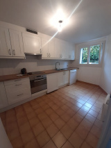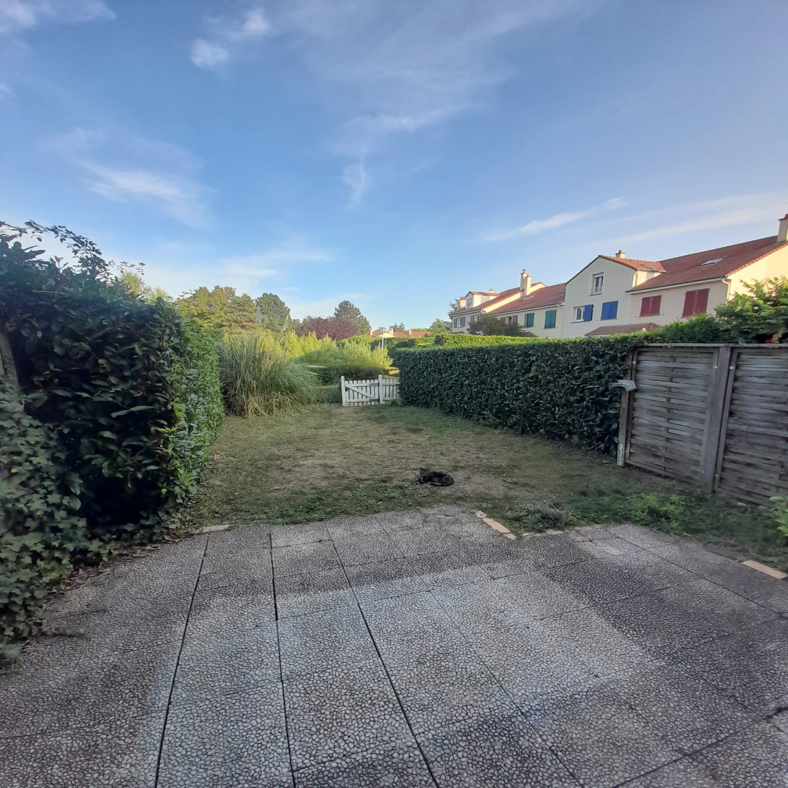 rdc : salon, cuisine, rangements, wc invités, accès jardin privé et grand jardin commun