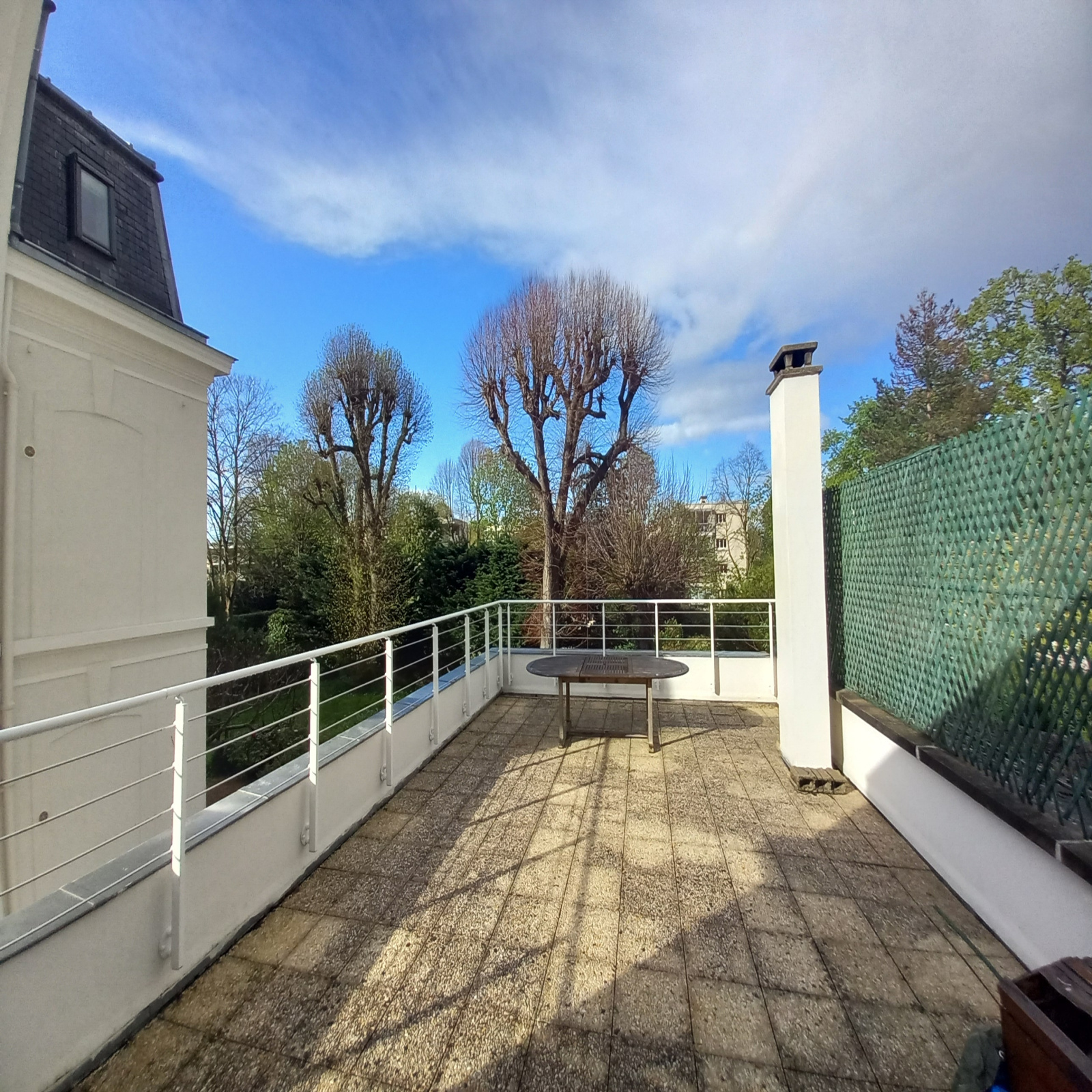 Quartier Alsace, Saint Germain à Laye, à 10 min à pied du RER A, maison d'habitation individuelle située dans une très belle copropriété. Elle se compose : au rez de chaussée : entrée, séjour avec cheminée/salle à manger, sur terrasse et jardin privatif, cuisine équipée, chambre, salle de douche avec Wc. A l'étage : 2 chambres, dressing, salle de bains et salle de douche, terrasse sans vis à vis.