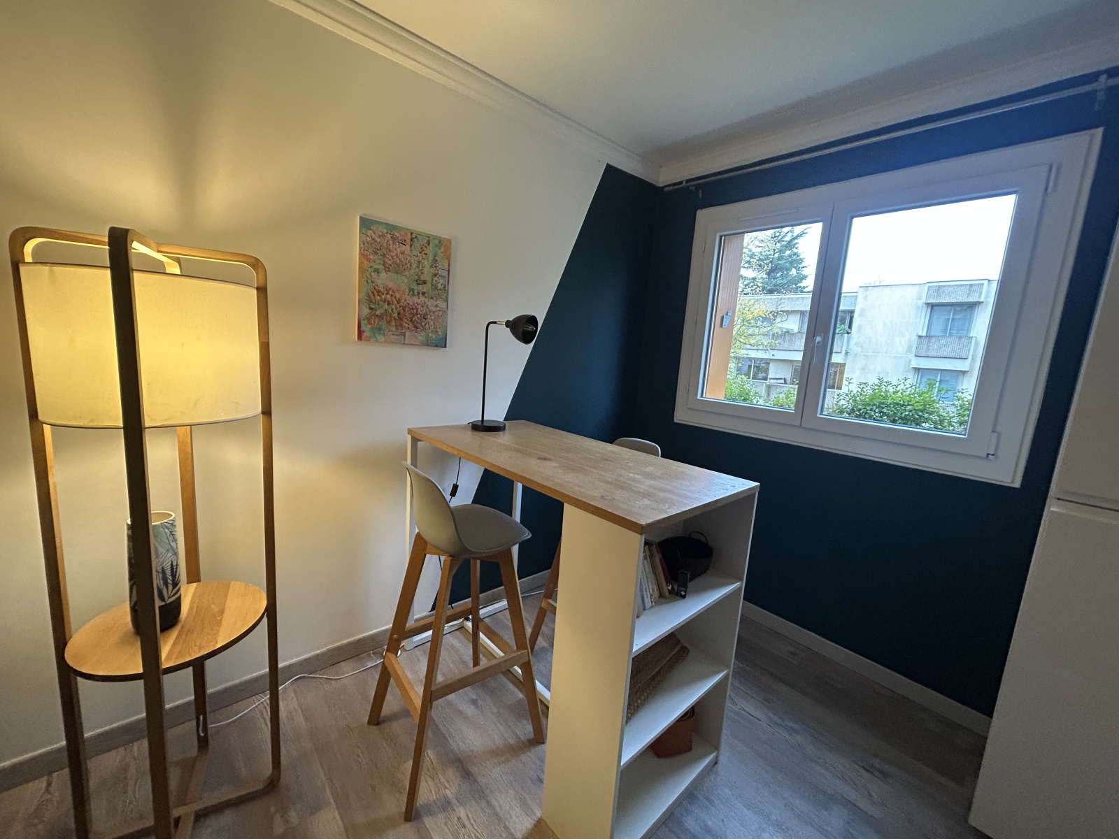 Il se compose d’un séjour lumineux de 22 m², parfaitement agencé avec un coin bureau, idéal pour le télétravail ou les études. La cuisine ouverte, entièrement aménagée et équipée, s’intègre harmonieusement à l’espace principal.