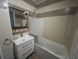 Le logement dispose également d’un grand placard de rangement et d’une salle de bains moderne avec WC intégré.