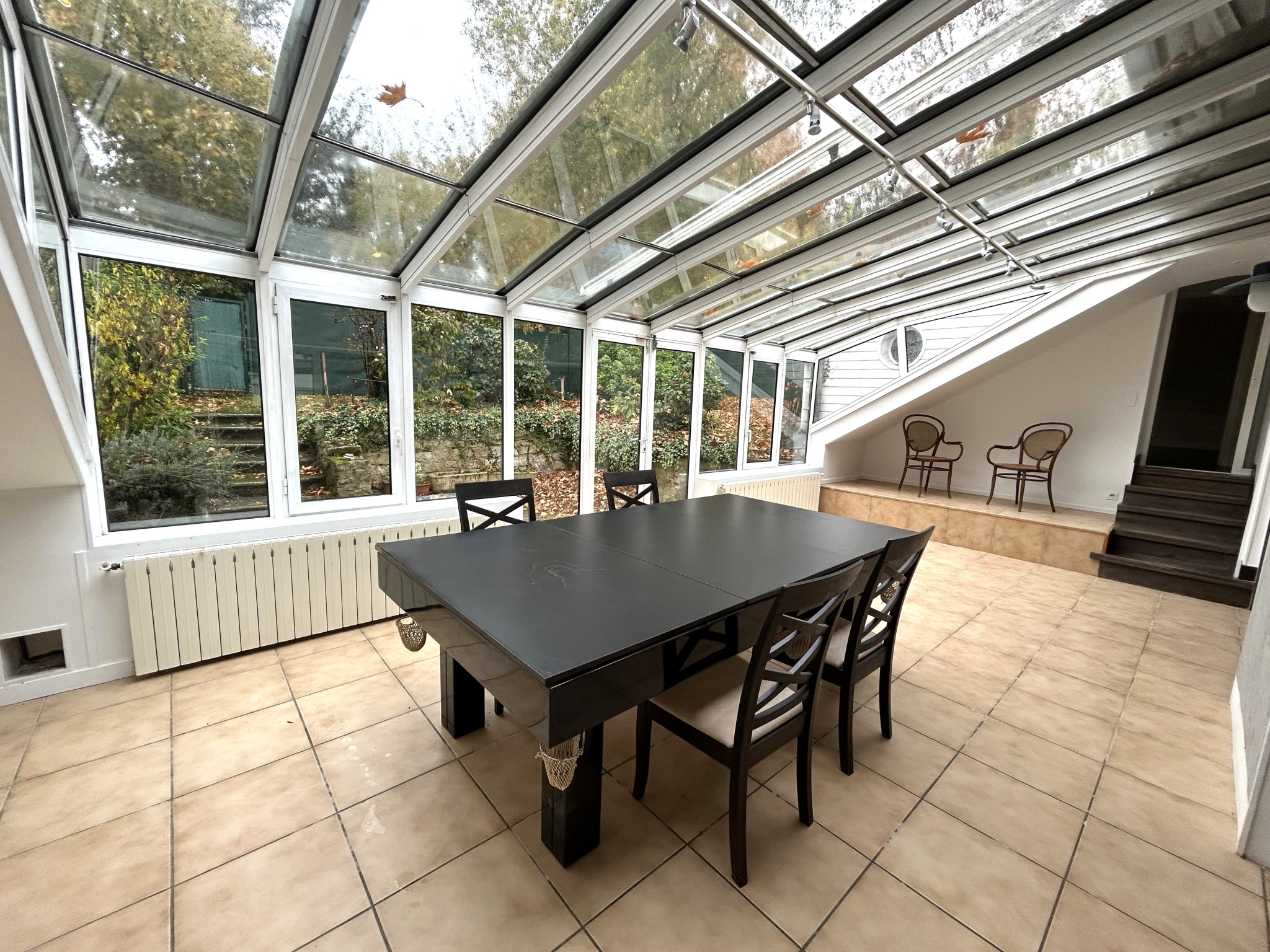 Une spacieuse véranda climatisée, ouverte sur le jardin, constitue une véritable pièce supplémentaire utilisable été comme hiver grâce à sa clim réversible.