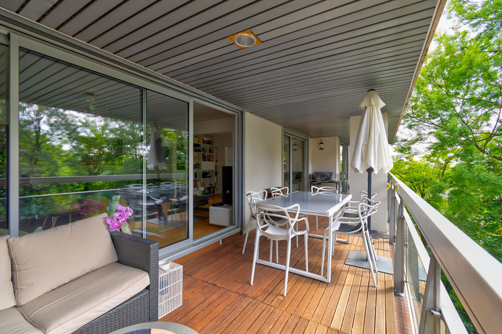 Le Cabinet Descolas a le plaisir de vous présenter ce splendide appartement de 125 m² (loi Carrez), entièrement rénové, situé dans la commune du Pecq, à deux pas du centre-ville de Saint-Germain-en-Laye et de son accès au RER. Au 4ème étage d'une résidence de standing, cet appartement de caractère se compose comme suit : Une vaste entrée qui distribue un espace bureau, idéal pour le télétravail ou un coin lecture, et un superbe espace de vie comprenant un double séjour, une salle à manger et une cuisine ouverte, parfaitement aménagée. L'ensemble s'ouvre sur une terrasse exposée sud, offrant une vue agréable sur la verdure environnante, propice à la détente et aux repas en extérieur. Côté nuit, l'appartement dispose de quatre chambres, dont une suite parentale avec sa propre salle d'eau et toilettes privés. Une salle de bains avec baignoire et douche, ainsi qu'un WC séparé, complètent cet espace. Une cave et un box fermé en sous-sol viennent parfaire ce bien d'exception, offrant à la fois praticité et confort. Ce bien rare, bénéficiant de prestations haut de gamme et d'une situation idéale, saura répondre aux attentes des plus exigeants. Une visite s'impose pour apprécier toute la qualité et le potentiel de cet appartement. N'hésitez pas à nous contacter pour organiser votre visite !