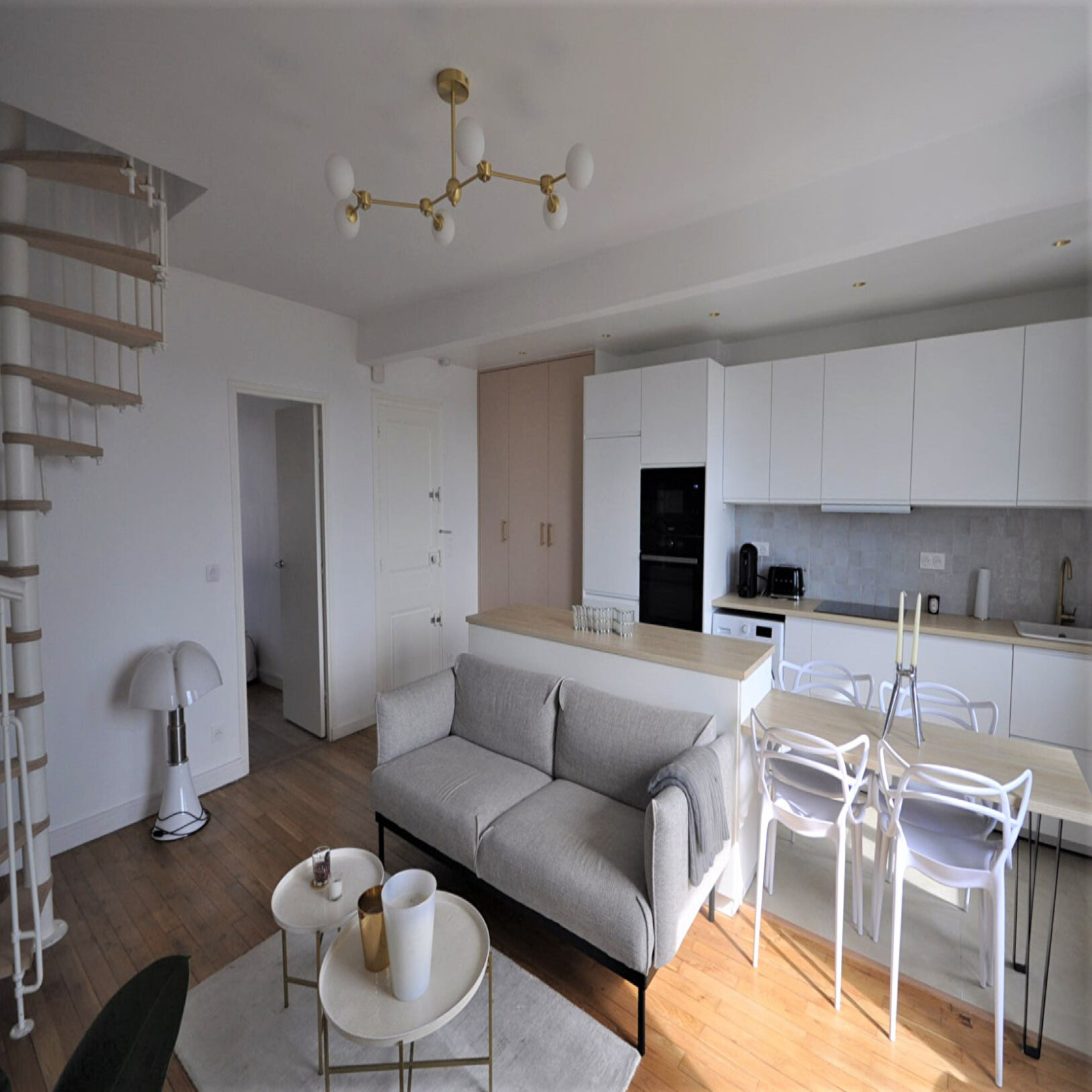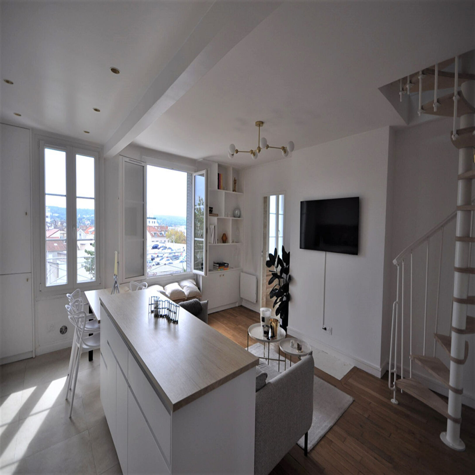 En HYPERCENTRE, Place du marche , au coeur de la vie de St Germain en Laye. Vous tomberez sous le charme de ce magnifique duplex ensoleillé, au 4 ième et dernier étage , plein sud, calme, entièrement refait a neuf en janvier 2023, très RARE. RER à 5 mn a pied, bus, écoles , restaurant, cinéma , théâtre , sont vos voisins. Vue dégagée , sans vis a vis. Petite copropriété, de type Haussmannien, sécurisée, compose de 7 lots. Au rdc: belle cuisine, meublée équipée, ouverte sur la pièce de vie de 30 m2, baignée de lumière, une salle de douche, wc, une chambre de 15 m2. A l'étage: grande chambre en sous pente , bureau, grenier . Peut être vendu meublé