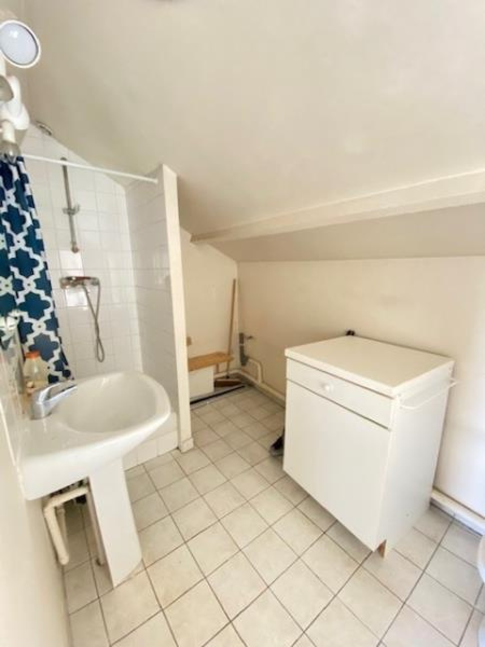 Le bien se situe dans une petite copropriété du centre-ville. Proche de toutes commodités, transports et commerces. L'immeuble est élevé sur un sous-sol (caves) de 4 niveaux d'habitation. Le bien est de type studio, non traversant, au 3ème étage sous combles, comprenant : Une entrée, une pièce principale, une cuisine américaine, une salle d'eau avec toilette. Sa surface habitable est de 25.54m² loi Boutin et de 31.99m² au sol. Le chauffage ainsi que la production d'eau chaude sont au gaz individuel (chaudière). Une cave complètent ce bien
