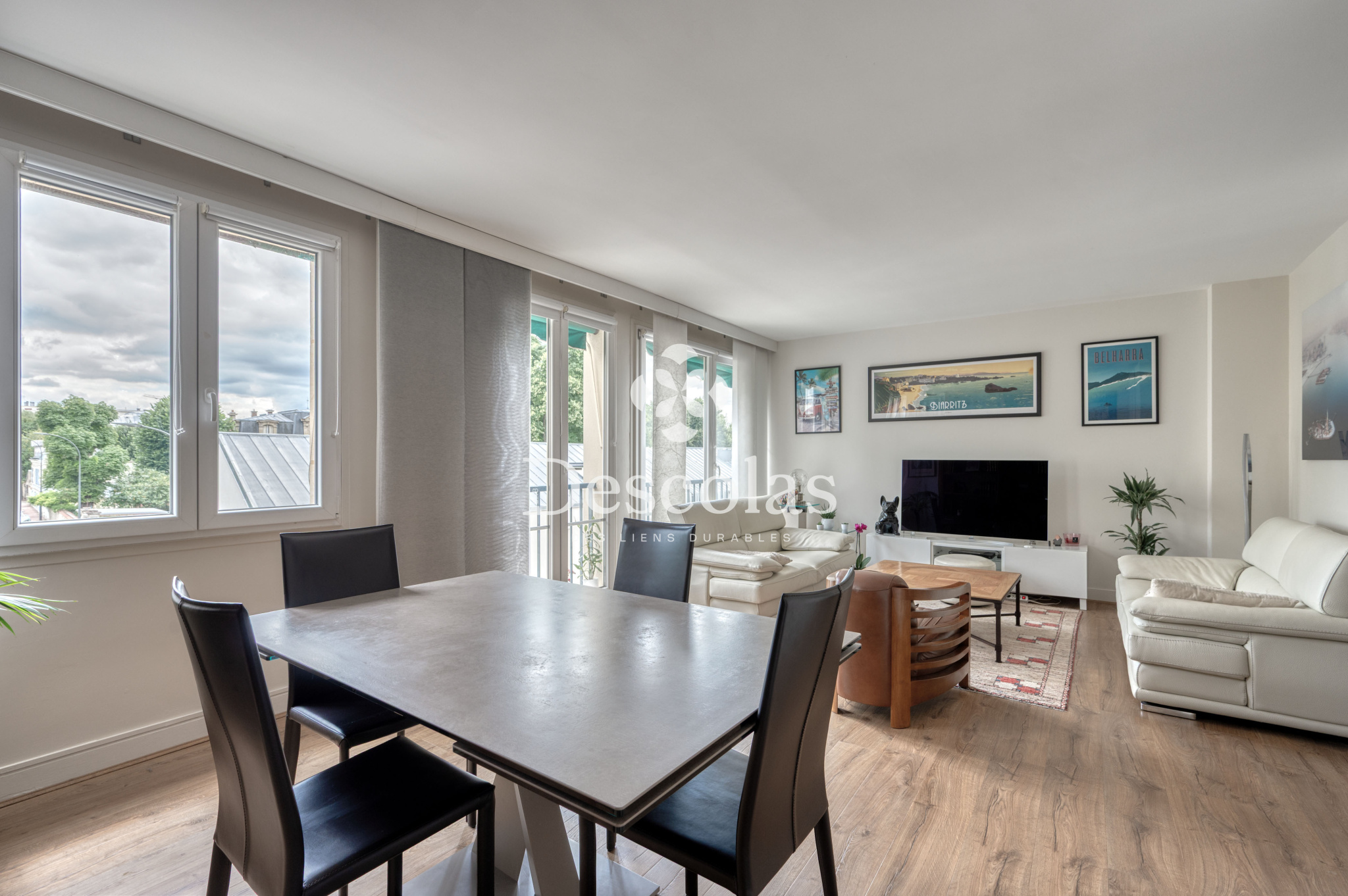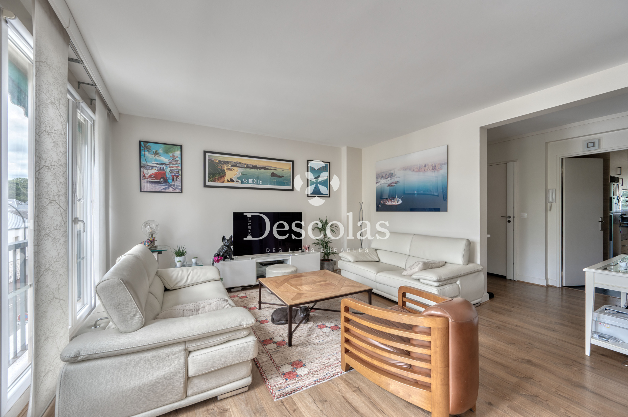 Cet appartement traversant de 92 m² environ se compose d'une entrée desservant directement le double séjour exposé SUD, d'une cuisine séparé avec son cellier attenant, de deux chambres spacieuses, d'une salle d'eau ainsi que des w.c séparé.