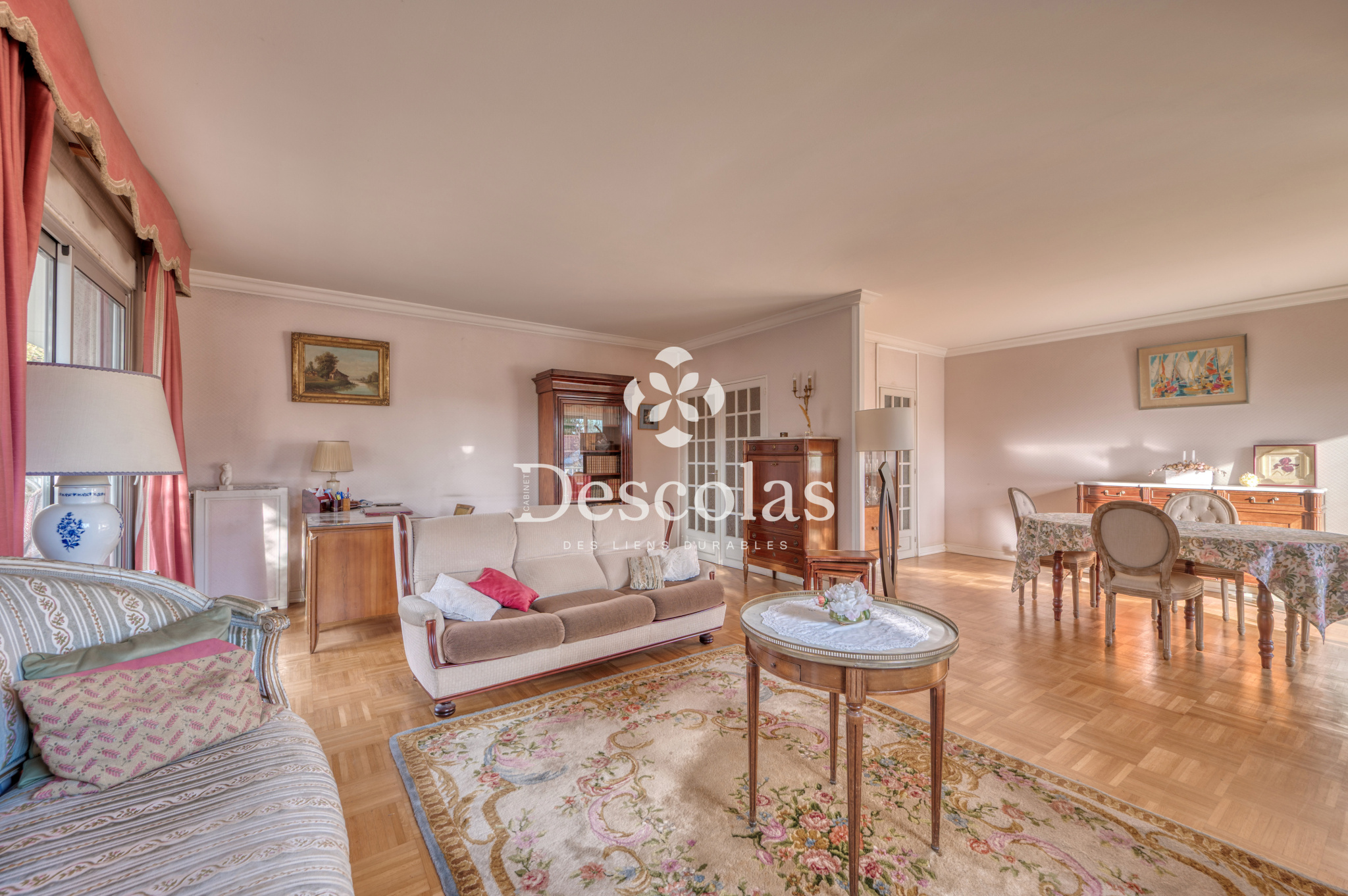 Situé au premier étage avec ascenseur, cet appartement familial d’environ 149 m² se compose d’une entrée, d’un double séjour/salle à manger avec deux accès aux balcons, d’une cuisine séparée avec son office attenant, de quatre chambres dont deux avec un accès à l’extérieur, de deux salles d’eau, d’une salle de bains avec WC, de toilettes de courtoisie et d’un dressing.