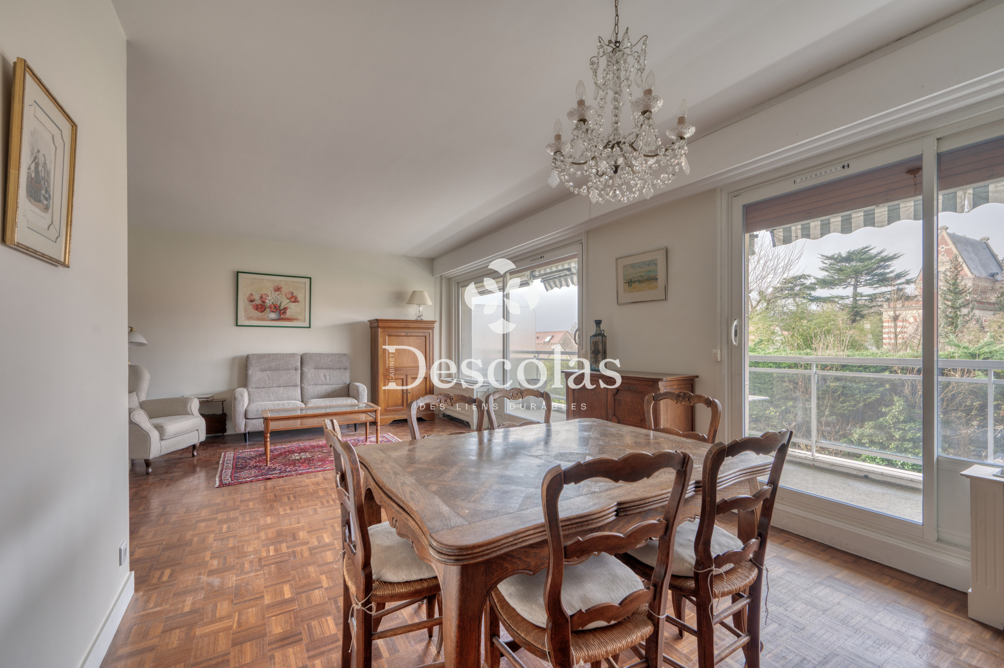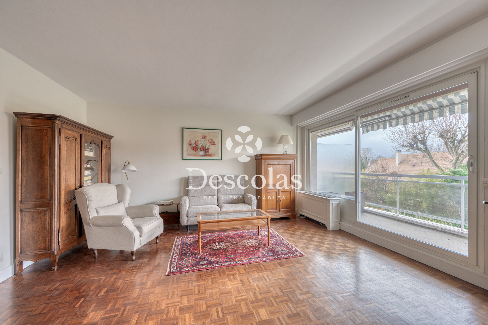 Il se compose d’une entrée, d’un séjour double parqueté ouvrant sur un grand balcon-terrasse exposé Ouest, avec une vue imprenable sur les jardins et sur le château du Lycée International. La cuisine est indépendante et fonctionnelle.