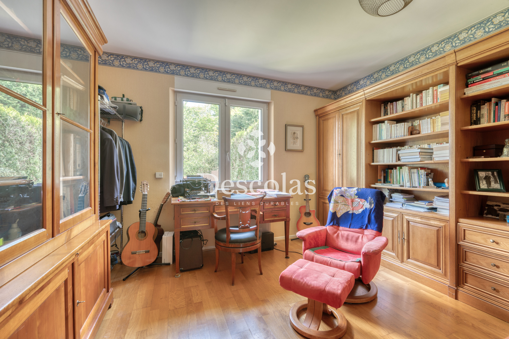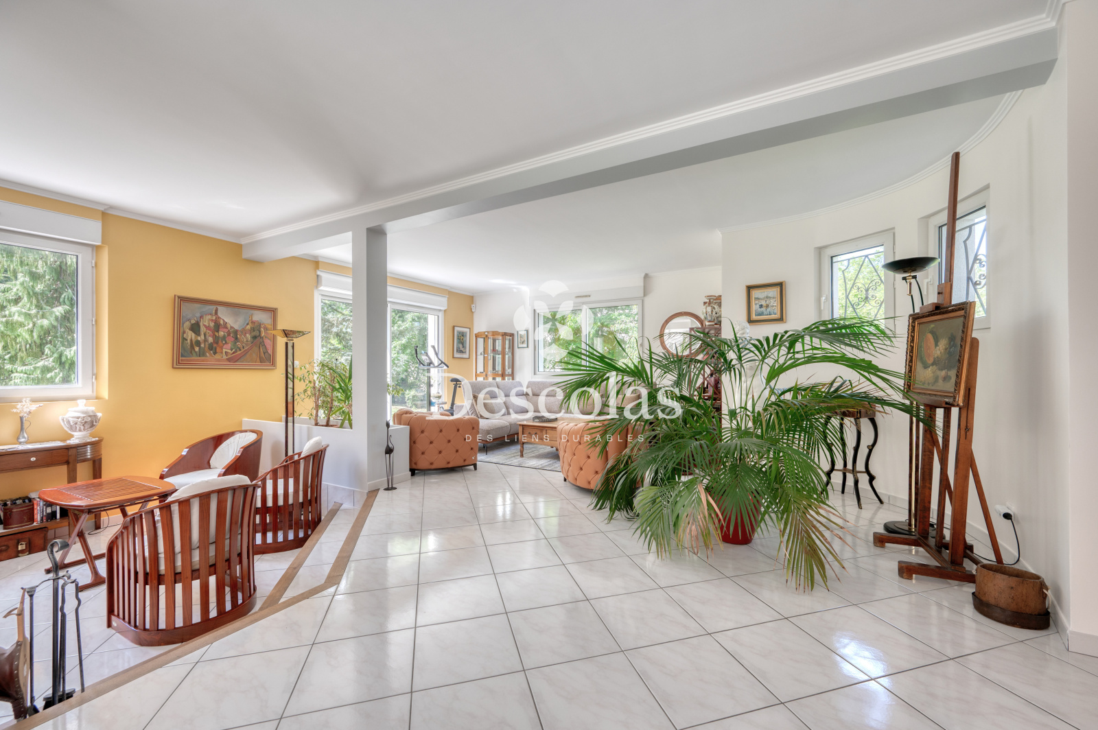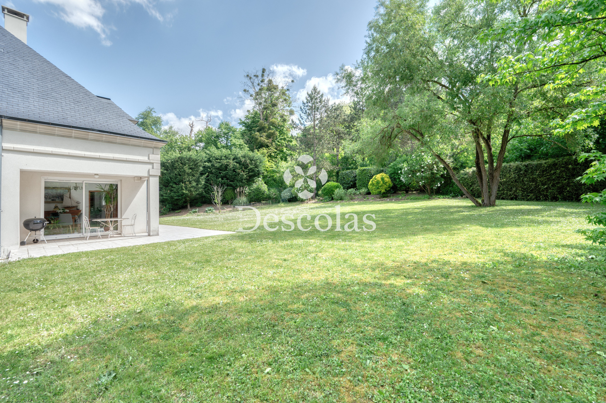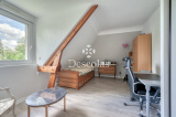 Maison de caractère d'environ 252 m² (287 m² au sol), édifiée sur un terrain de 2 472 m² environ, très bien arboré. Ce bien d'exception construite en 1992 se compose d'une entrée avec dégagement desservant un séjour/salle à manger d'environ 68 m², très lumineux grâce à ses baies vitrées et à son exposition SUD-OUEST, d'une cuisine dinatoire indépendante avec accès au jardin, d'une chambre avec sa salle de bains, d'un bureau de 20 m² pouvant être transformé en chambre, ainsi que d'un toilette de courtoisie. Le palier du premier étage dessert indépendamment toutes les pièces de ce niveau, telles qu'une suite parentale d'environ 26 m² avec son dressing et sa salle de bains attenante, une seconde chambre avec sa salle d'eau, deux autres chambres, une salle de bains et deux toilettes de courtoisie. En complément : un sous-sol total comprenant deux garages pouvant accueillir plusieurs véhicules, une buanderie, une chaufferie, un cellier, une cave à vin, un atelier et un espace de rangement. La ligne L (gare de L'Étang-la-Ville) se trouve à moins de 5 minutes à pied, en direction de Paris Saint-Lazare / La Défense. À 15 minutes du Lycée International de Saint-Germain-en-Laye et à 20 minutes de la British School of Paris à Croissy-sur-Seine.
