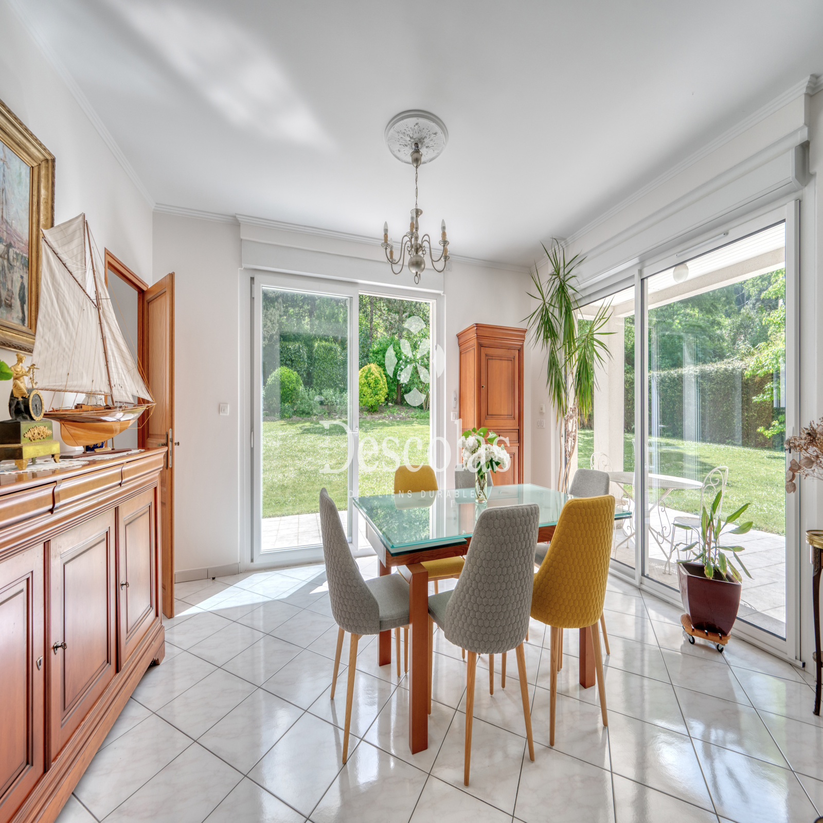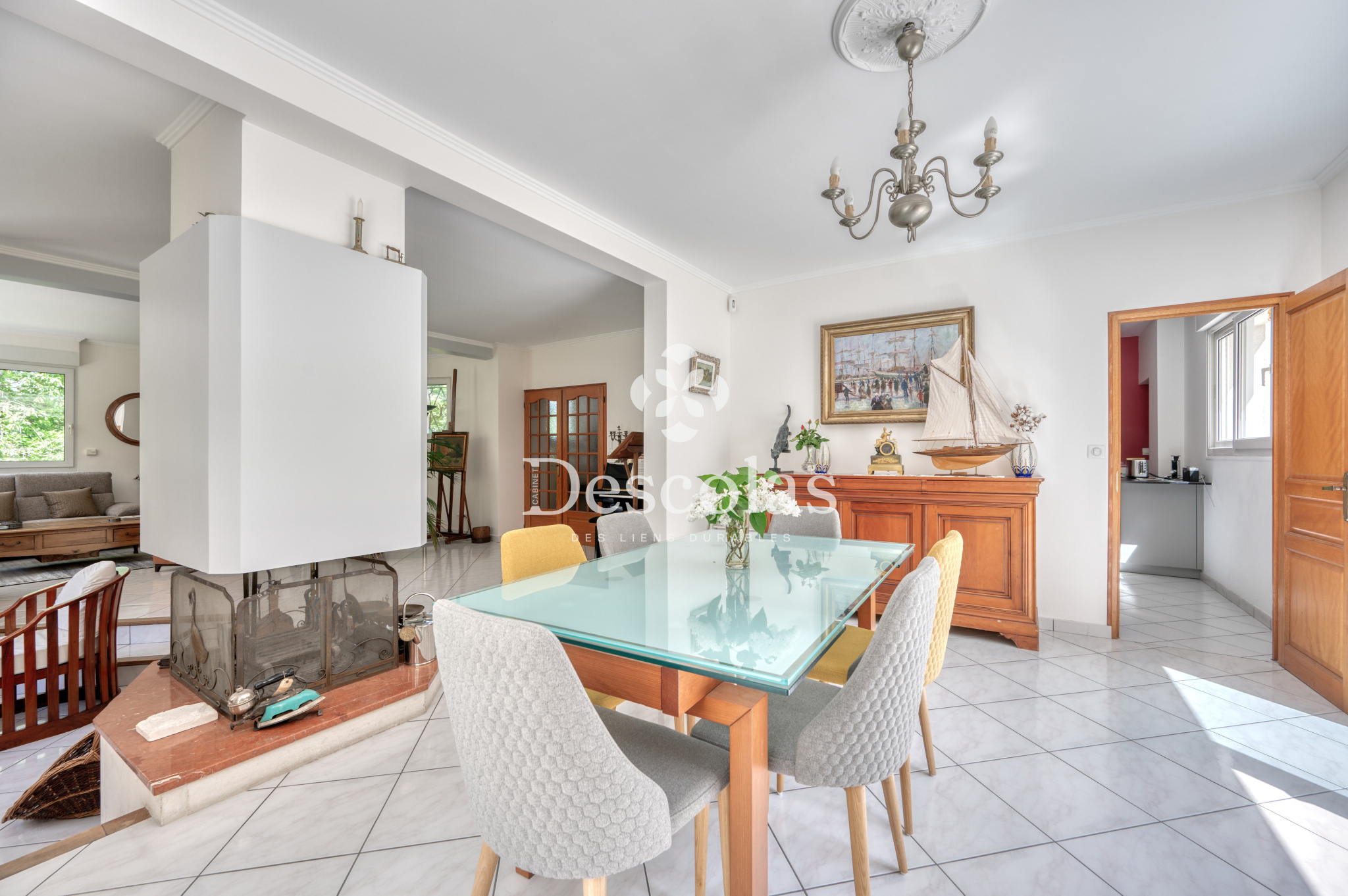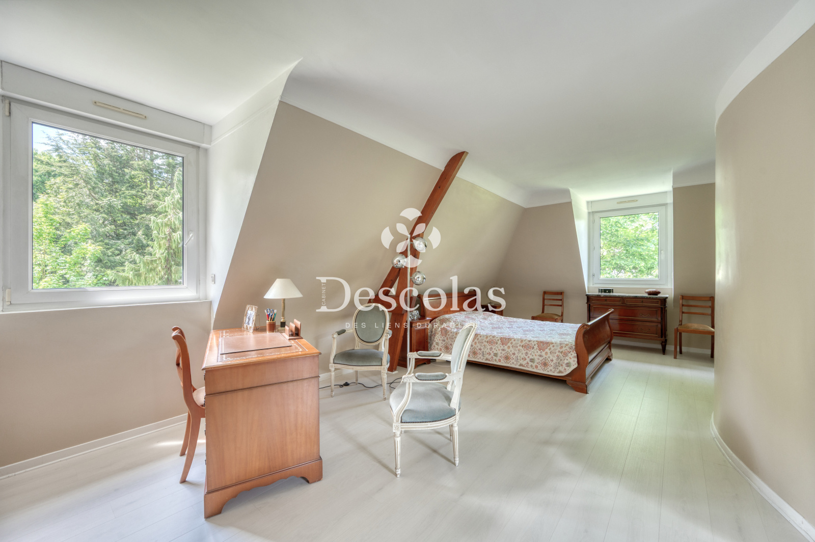 Maison de caractère d'environ 252 m² (287 m² au sol), édifiée sur un terrain de 2 472 m² environ, très bien arboré. Ce bien d'exception construite en 1992 se compose d'une entrée avec dégagement desservant un séjour/salle à manger d'environ 68 m², très lumineux grâce à ses baies vitrées et à son exposition SUD-OUEST, d'une cuisine dinatoire indépendante avec accès au jardin, d'une chambre avec sa salle de bains, d'un bureau de 20 m² pouvant être transformé en chambre, ainsi que d'un toilette de courtoisie. Le palier du premier étage dessert indépendamment toutes les pièces de ce niveau, telles qu'une suite parentale d'environ 26 m² avec son dressing et sa salle de bains attenante, une seconde chambre avec sa salle d'eau, deux autres chambres, une salle de bains et deux toilettes de courtoisie. En complément : un sous-sol total comprenant deux garages pouvant accueillir plusieurs véhicules, une buanderie, une chaufferie, un cellier, une cave à vin, un atelier et un espace de rangement. La ligne L (gare de L'Étang-la-Ville) se trouve à moins de 5 minutes à pied, en direction de Paris Saint-Lazare / La Défense. À 15 minutes du Lycée International de Saint-Germain-en-Laye et à 20 minutes de la British School of Paris à Croissy-sur-Seine.