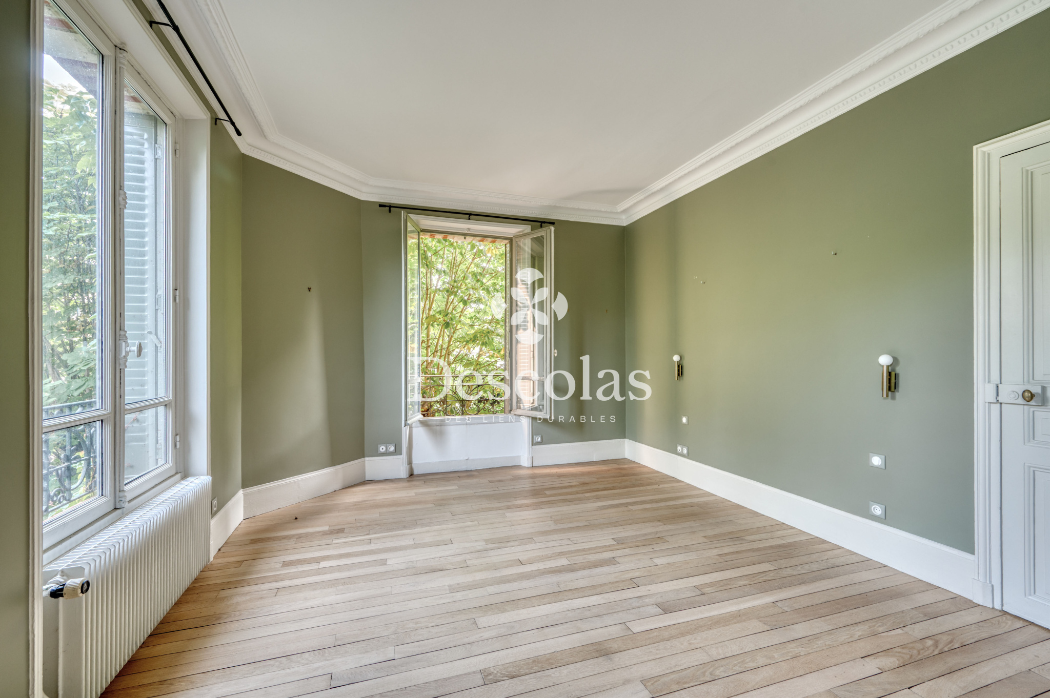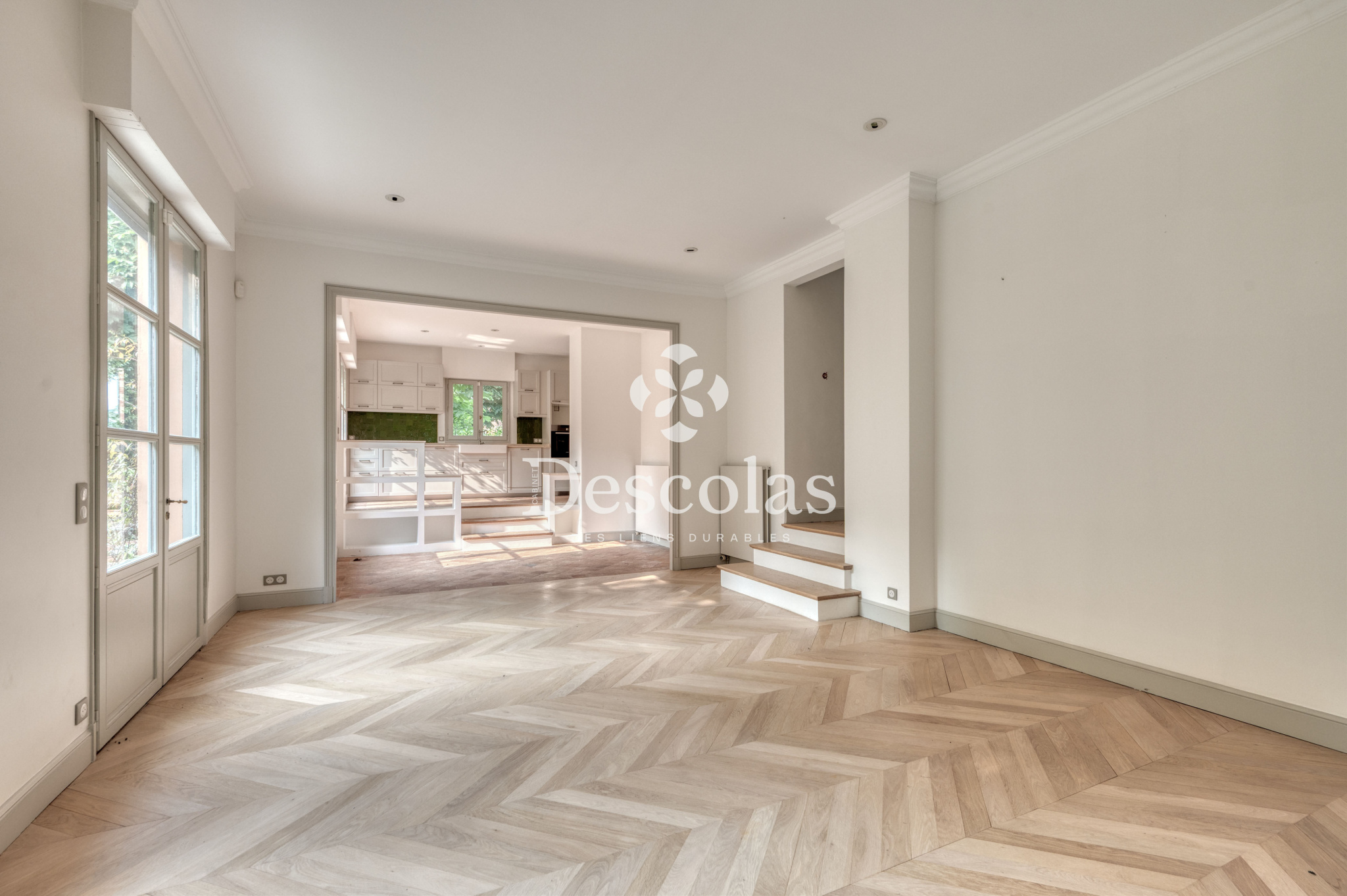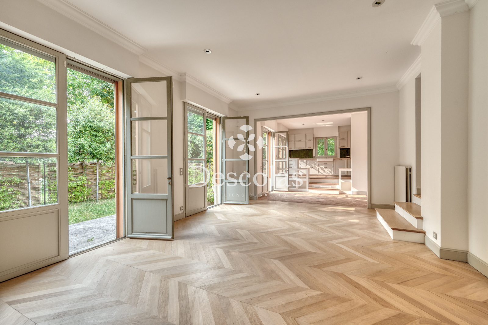 Située à seulement deux minutes à pied de la forêt domaniale et du tramway menant au RER A, dans l'un des quartiers les plus prisés de Saint-Germain-en-Laye, cette élégante demeure d'environ 280 m² environ a été édifiée au début du XXe siècle sur un terrain arboré de 1 000 m² environ. Alliant avec harmonie le charme de l'ancien (parquets, moulures, cheminées) à de beaux volumes et une luminosité optimale à chaque niveau, cette propriété saura séduire les amateurs de belles demeures par son cachet authentique et la qualité de ses prestations. Entièrement rénovée avec soin et parfaitement entretenue, elle bénéficie d'un agréable jardin exposé sud-ouest, offrant un cadre de vie idéal pour une famille en quête de confort et de sérénité. La maison se compose comme suit : Au rez-de-chaussée : une entrée avec vestiaire et WC invités, un premier salon, un bureau/bibliothèque, un second salon avec cheminée ouvrant sur la terrasse, une salle à manger ainsi qu'une cuisine ouverte aménagée et équipée. Le pallier du premier étage dessert une suite parentale comprenant une grande chambre, un dressing, une salle d'eau et des WC séparés. Le deuxième étage se compose de trois chambres, d'une salle de bains avec WC, d'une salle d'eau. Les combles aménagés offrent une chambre et une salle d'eau. Un sous-sol partiel et de nombreuses places de parking complètent ce bien ainsi qu'une maison de gardien d'environ 50 m² entièrement rénovée comprenant un séjour, une cuisine, une salle d'eau et deux chambres.