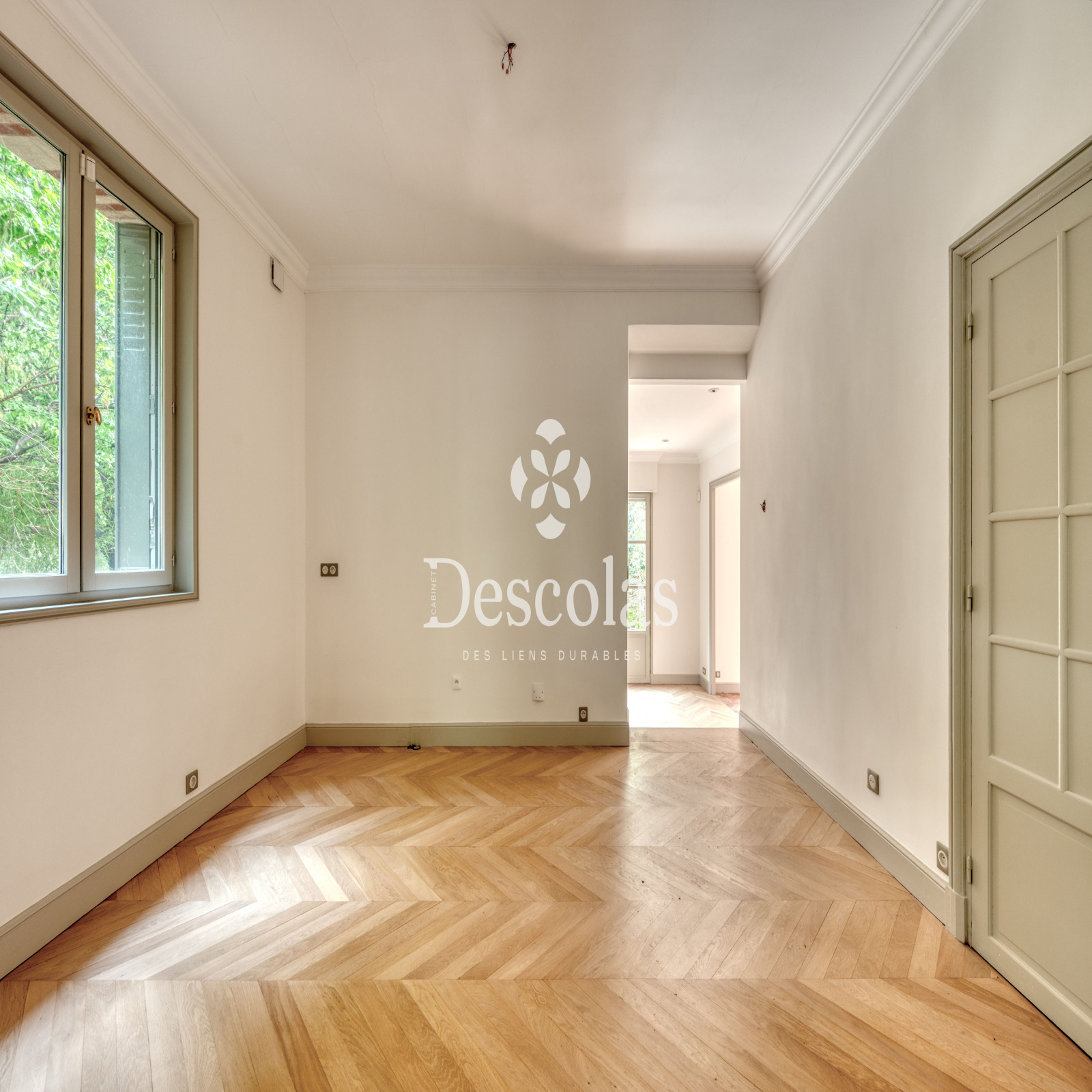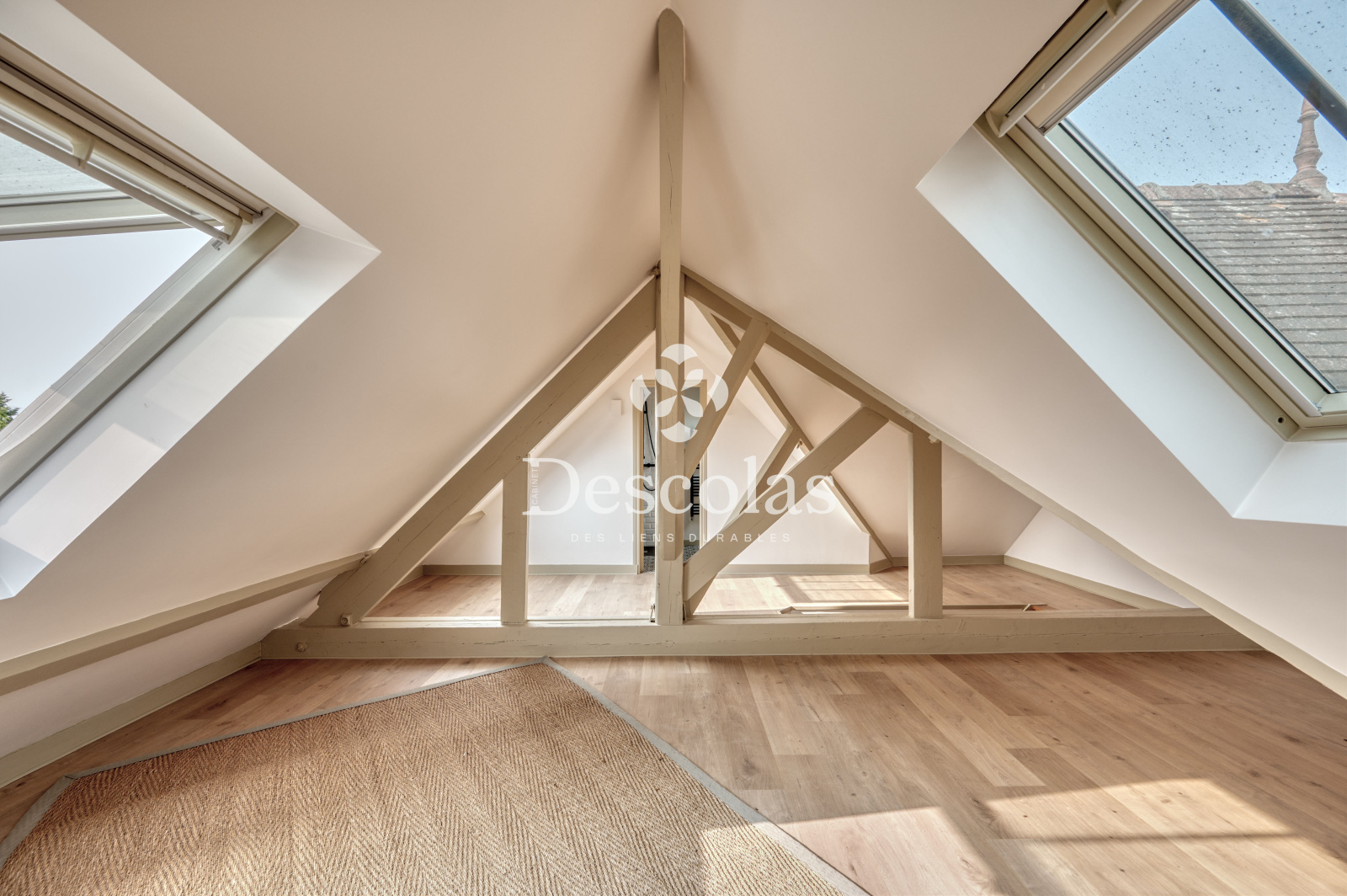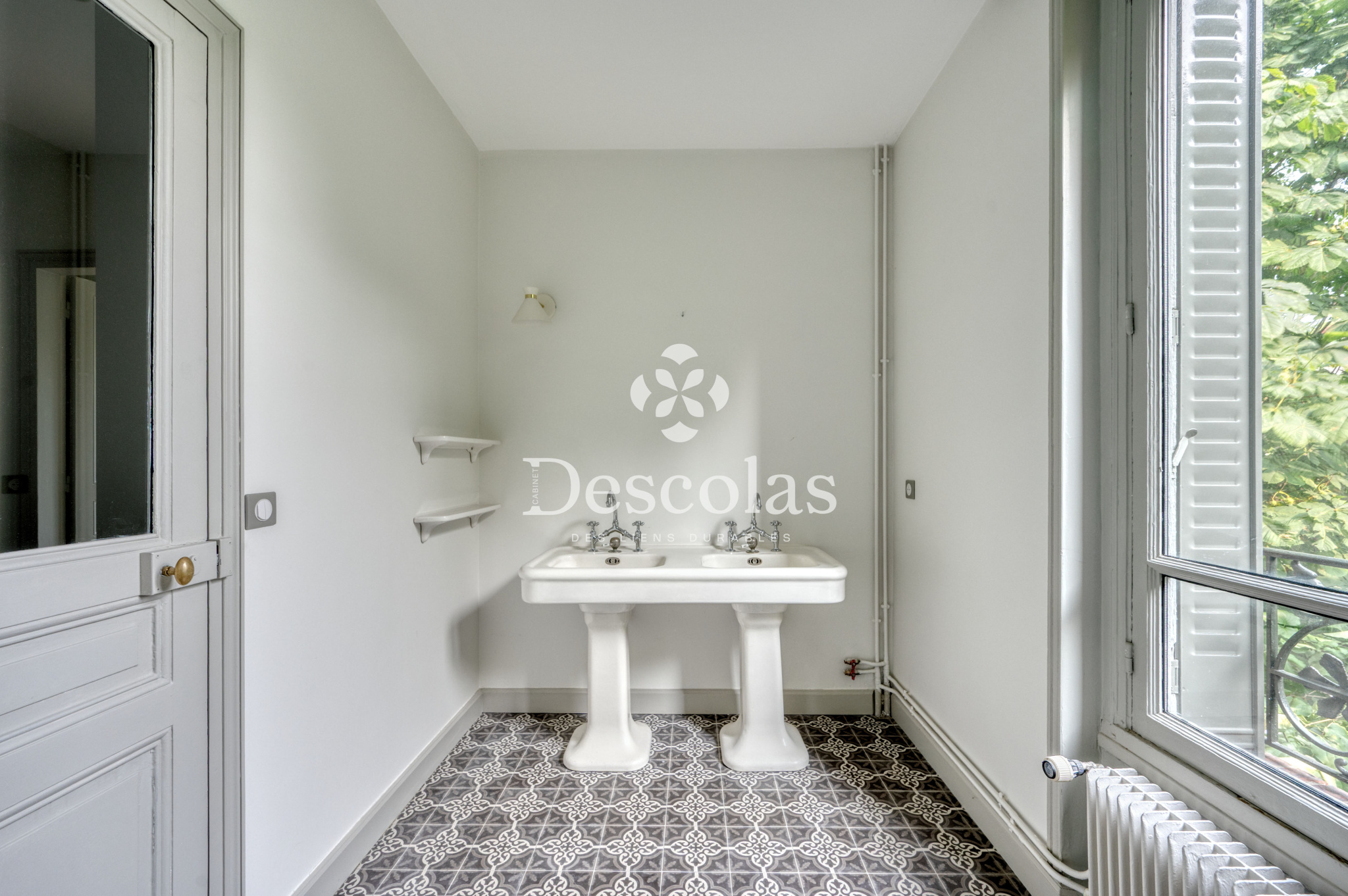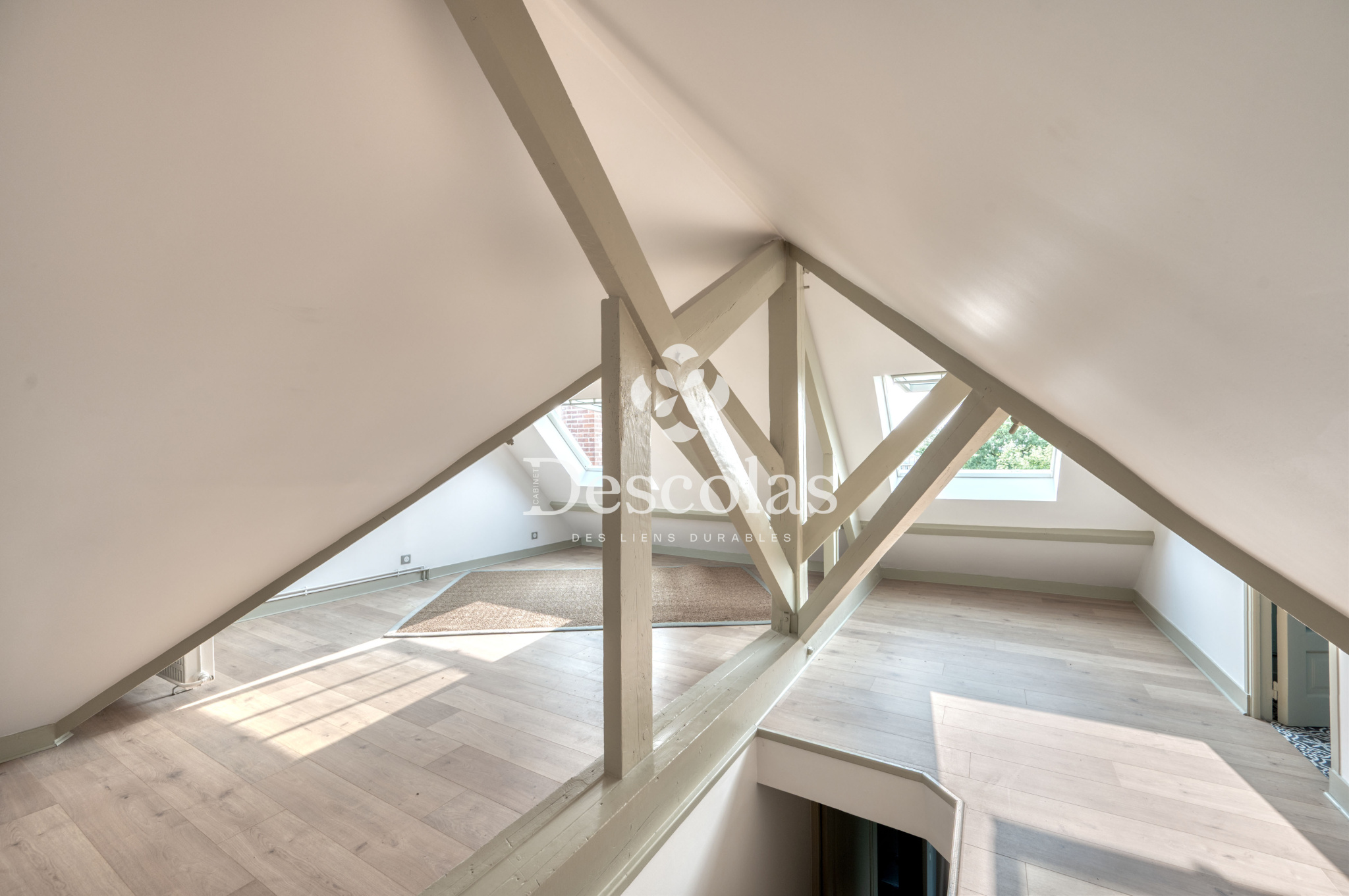 Située à seulement deux minutes à pied de la forêt domaniale et du tramway menant au RER A, dans l'un des quartiers les plus prisés de Saint-Germain-en-Laye, cette élégante demeure d'environ 280 m² environ a été édifiée au début du XXe siècle sur un terrain arboré de 1 000 m² environ. Alliant avec harmonie le charme de l'ancien (parquets, moulures, cheminées) à de beaux volumes et une luminosité optimale à chaque niveau, cette propriété saura séduire les amateurs de belles demeures par son cachet authentique et la qualité de ses prestations. Entièrement rénovée avec soin et parfaitement entretenue, elle bénéficie d'un agréable jardin exposé sud-ouest, offrant un cadre de vie idéal pour une famille en quête de confort et de sérénité. La maison se compose comme suit : Au rez-de-chaussée : une entrée avec vestiaire et WC invités, un premier salon, un bureau/bibliothèque, un second salon avec cheminée ouvrant sur la terrasse, une salle à manger ainsi qu'une cuisine ouverte aménagée et équipée. Le pallier du premier étage dessert une suite parentale comprenant une grande chambre, un dressing, une salle d'eau et des WC séparés. Le deuxième étage se compose de trois chambres, d'une salle de bains avec WC, d'une salle d'eau. Les combles aménagés offrent une chambre et une salle d'eau. Un sous-sol partiel et de nombreuses places de parking complètent ce bien ainsi qu'une maison de gardien d'environ 50 m² entièrement rénovée comprenant un séjour, une cuisine, une salle d'eau et deux chambres.