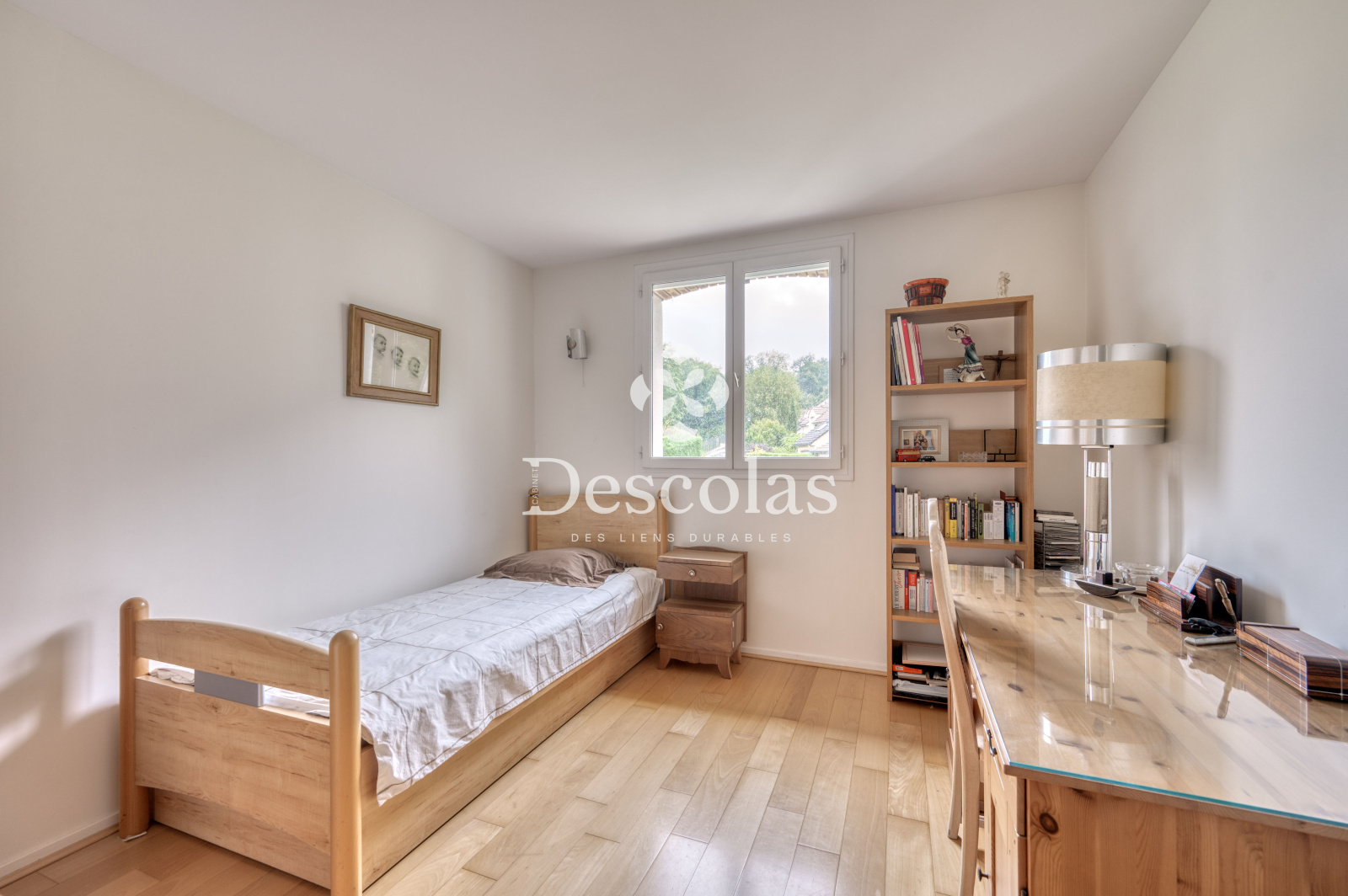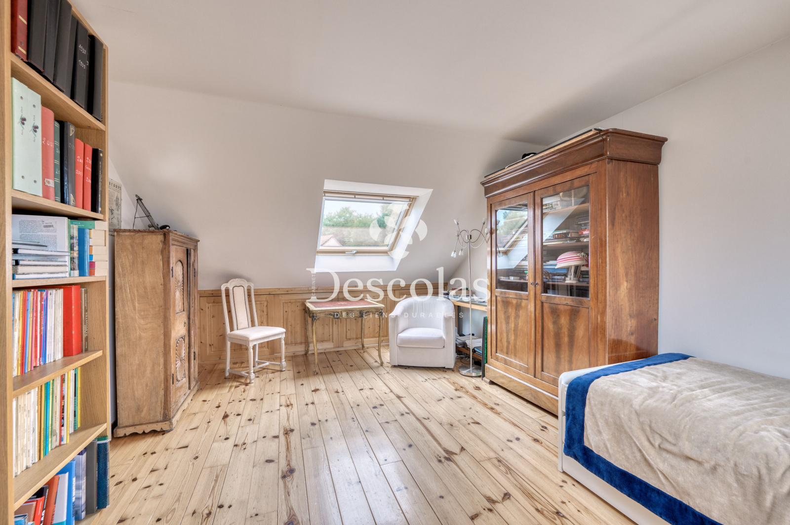 À quelques minutes seulement des réputés Lycée International et Institut Notre-Dame, découvrez cette élégante maison familiale, parfaitement entretenue et nichée aux portes de la forêt.Dès l’entrée, vous serez séduits par un vaste hall avec rangements, menant vers un séjour lumineux exposé sud-ouest, une cuisine indépendante aménagée et équipée, un cellier et un WC.À l’étage, profitez de quatre grandes chambres avec rangements, dont une suite parentale avec salle de bains et balcon privé, ainsi qu’une salle d’eau et un WC séparé.Les combles aménagés offrent une cinquième chambre et un espace bureau, idéal pour le télétravail ou un espace loisirs.Un garage avec combles aménagés et un abri de jardin complètent cet ensemble.Un cadre de vie recherché, au calme, proche des écoles et de la nature.