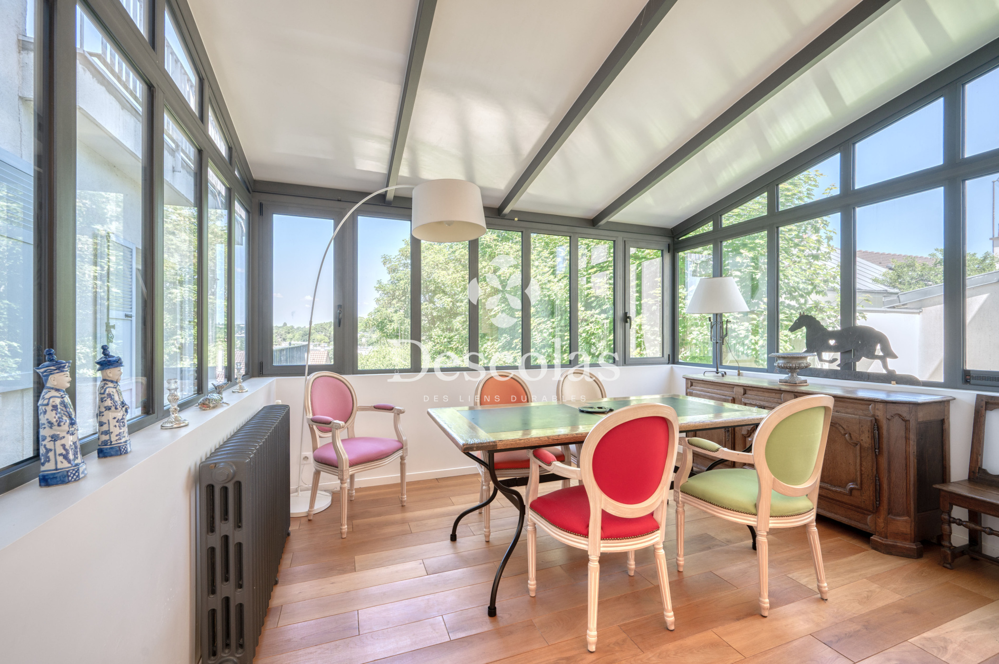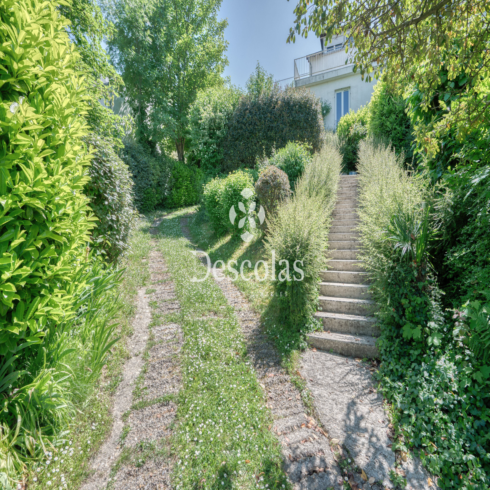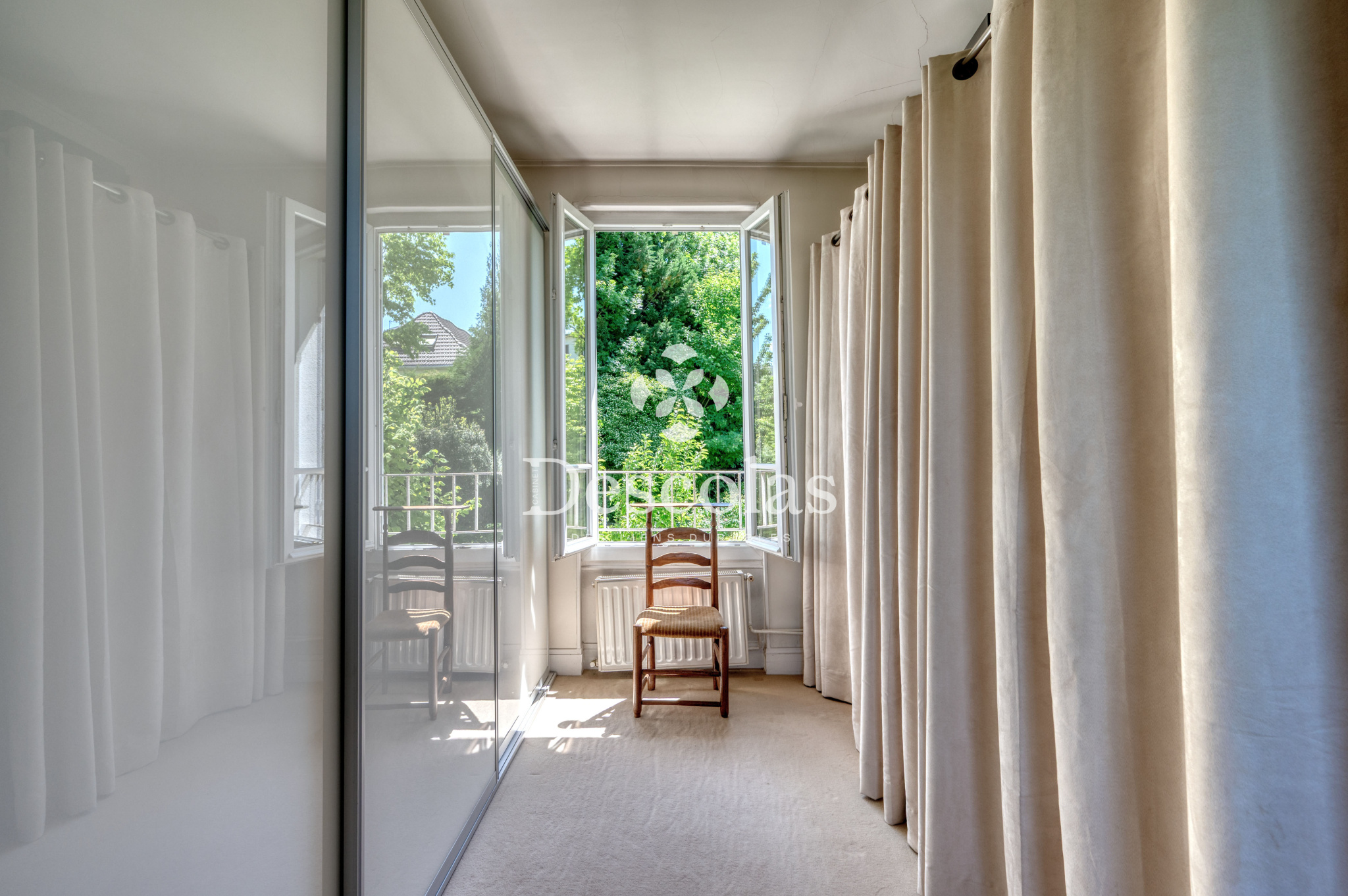 Au sein du domaine privé de Grandchamp, dans un cadre bucolique, maison des années 20 d'environ 170 m² bâtie sur un terrain de 847 m², au calme et sans vis-à-vis. En rez-de-jardin, vous découvrirez une vaste entrée desservant un salon-salle à manger lumineux et une cuisine dinatoire, donnant accès de plain-pied au jardin, un grand bureau (ou chambre de 19m²). Aux étages, vous bénéficiez de 3 belles chambres (4 possibles) dont une chambre parentale avec sa terrasse privative, un palier, une salle d'eau, une salle de bains privative sur l'une des chambres, un dressing. Le sous-sol vous donne la possibilité de nombreux rangements grâce sa belle cave, un double garage et un vaste préau (atelier - garage supplémentaire). POINTS FORTS: - Calme et sans vis-à-vis - Domaine privé - 4 Chambres - Jardin de plain-pied - proche des écoles, du Lycée International et des commerces, - Accès RER A St Germain par le bus, en 15 minutes.