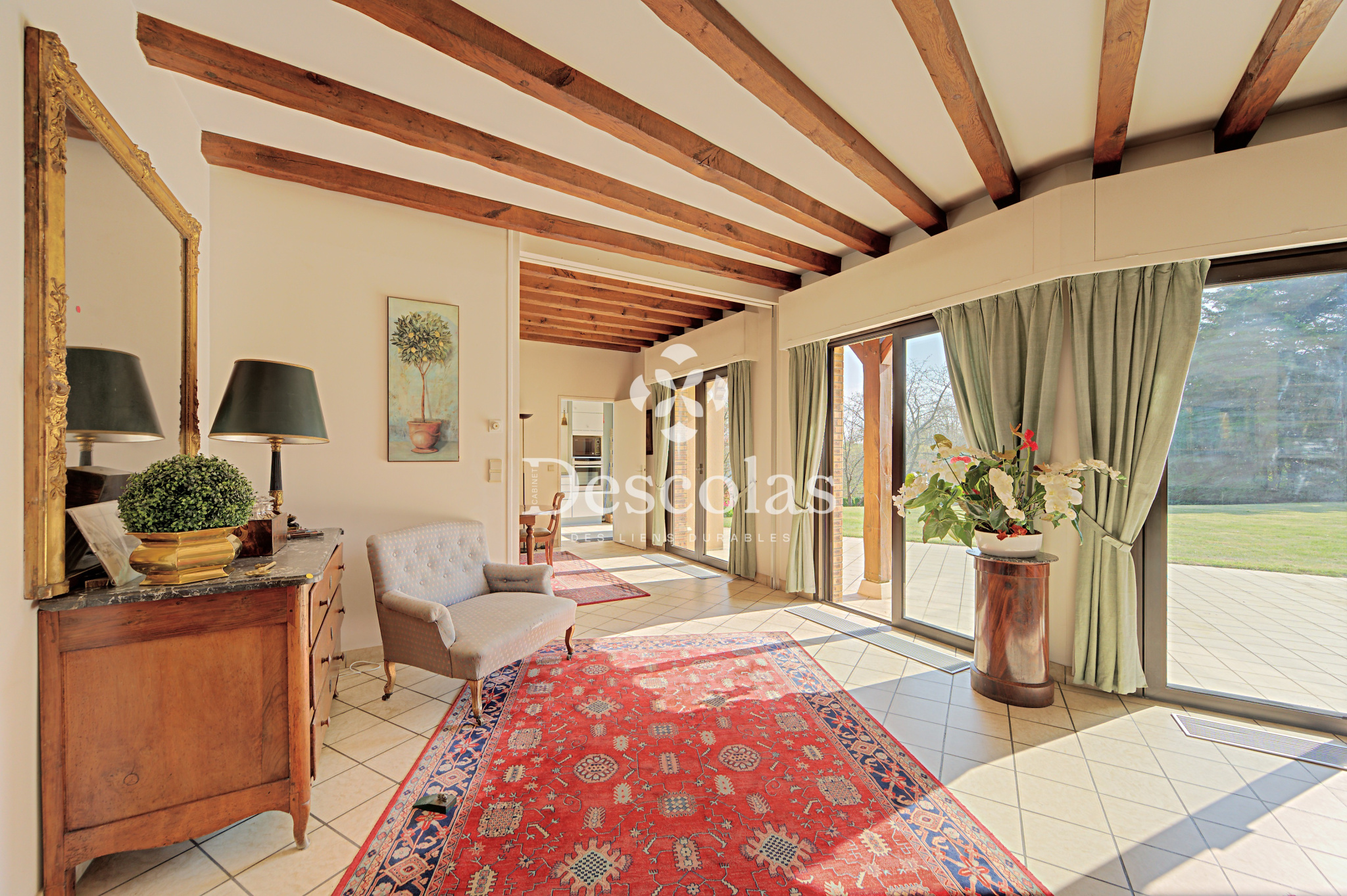 Le triple séjour de 71 m² exposé plein Sud agrémenté de sa cheminée et de grandes baies vitrées, vous garantisse une luminosité exceptionnelle avec son accès de plain pied sur la terrasse et le jardin.